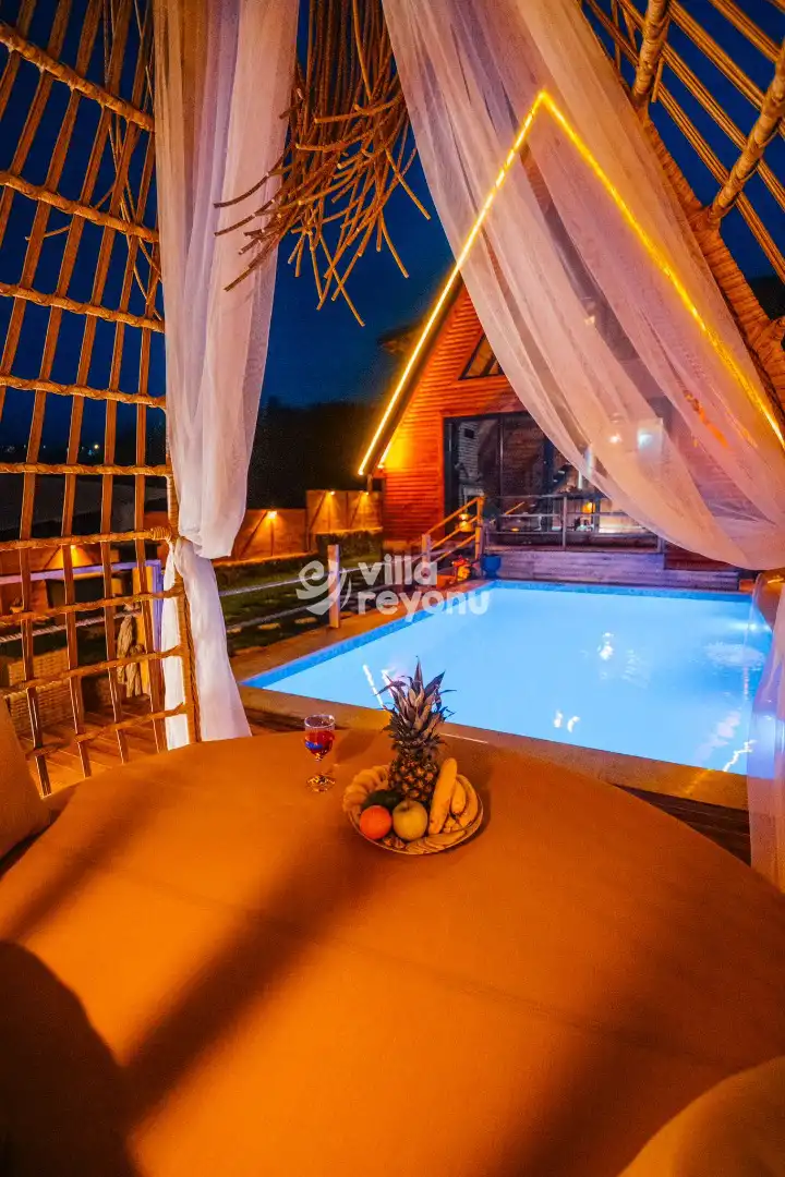 %100 Müşteri MemnuniyetiBungalov Derin , Sapanca'nın eşsiz doğasında yeşillikler arasında konumlandırılmıştır. Büyüleyici atmosferiyle tatilinizi unutulmaz kılmak için eksiksiz bir şekilde dizayn edilen bungalovumuz, 4 kişilik yatak kapasitesiyle balayı çiftleri ve çekirdek aileler için oldukça ideal bir seçenek olacaktır. 2 yatak odası, 1 salon, 2 banyo/wc bulanan bungalovumuzda, özel havuz ve iç mekan jakuzi mevcuttur. Büyükşehirlerin stresinden uzaklaşmak ve üzerinizde biriken tüm yorgunluktan arınmak için Bungalov Derin sizleri bekliyor.