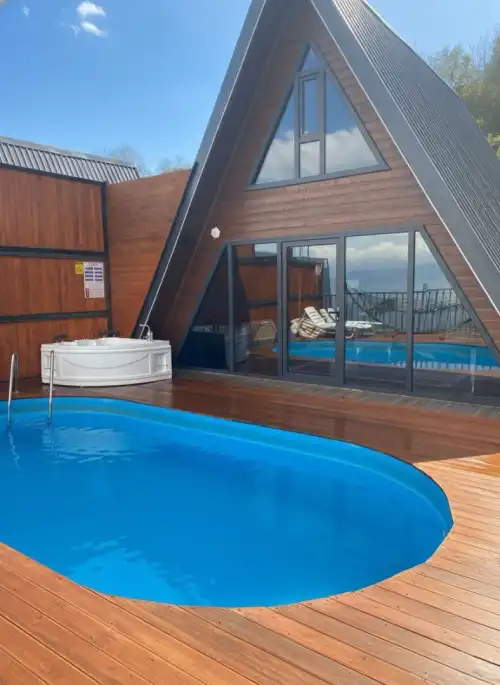 Bungalov Dünya 1, Sapanca'nın eşsiz doğasında yeşillikler arasında konumlandırılmıştır. Büyüleyici atmosferiyle tatilinizi unutulmaz kılmak için eksiksiz bir şekilde dizayn edilen bungalovumuz, 4 kişilik yatak kapasitesiyle balayı çiftleri ve çekirdek aileler için oldukça ideal bir seçenek olacaktır. 2 yatak odası, 1 salon, 1 banyo/wc bulanan bungalovumuzda, özel havuz ve jakuzi bulunmaktadır. Büyükşehirlerin stresinden uzaklaşmak ve üzerinizde biriken tüm yorgunluktan arınmak için Bungalov Dünya 1 sizleri bekliyor.