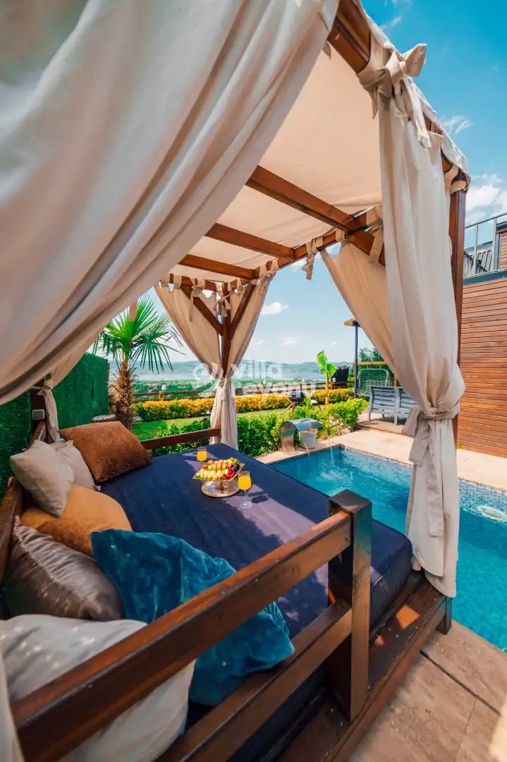 * Doğa içerisinde bulunan tüm villalarımızda düzenli olarak ilaçlama yapılmaktadır. Ancak yine de çevrede kelebek, böcek, sinek vb. bulunma ihtimali bulunmaktadır.