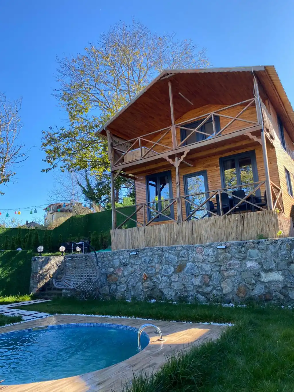 Bungalov Lunea, Sapanca'nın eşsiz doğasında yeşillikler arasında konumlandırılmıştır. Büyüleyici atmosferiyle tatilinizi unutulmaz kılmak için eksiksiz bir şekilde dizayn edilen bungalovumuz, 4 kişilik yatak kapasitesiyle balayı çiftleri ve çekirdek aileler için oldukça ideal bir seçenek olacaktır. 2 yatak odası, 1 salon, 1 banyo/wc bulanan bungalovumuzda, özel havuz bulunmaktadır. Büyükşehirlerin stresinden uzaklaşmak ve üzerinizde biriken tüm yorgunluktan arınmak için Bungalov Lunea sizleri bekliyor.