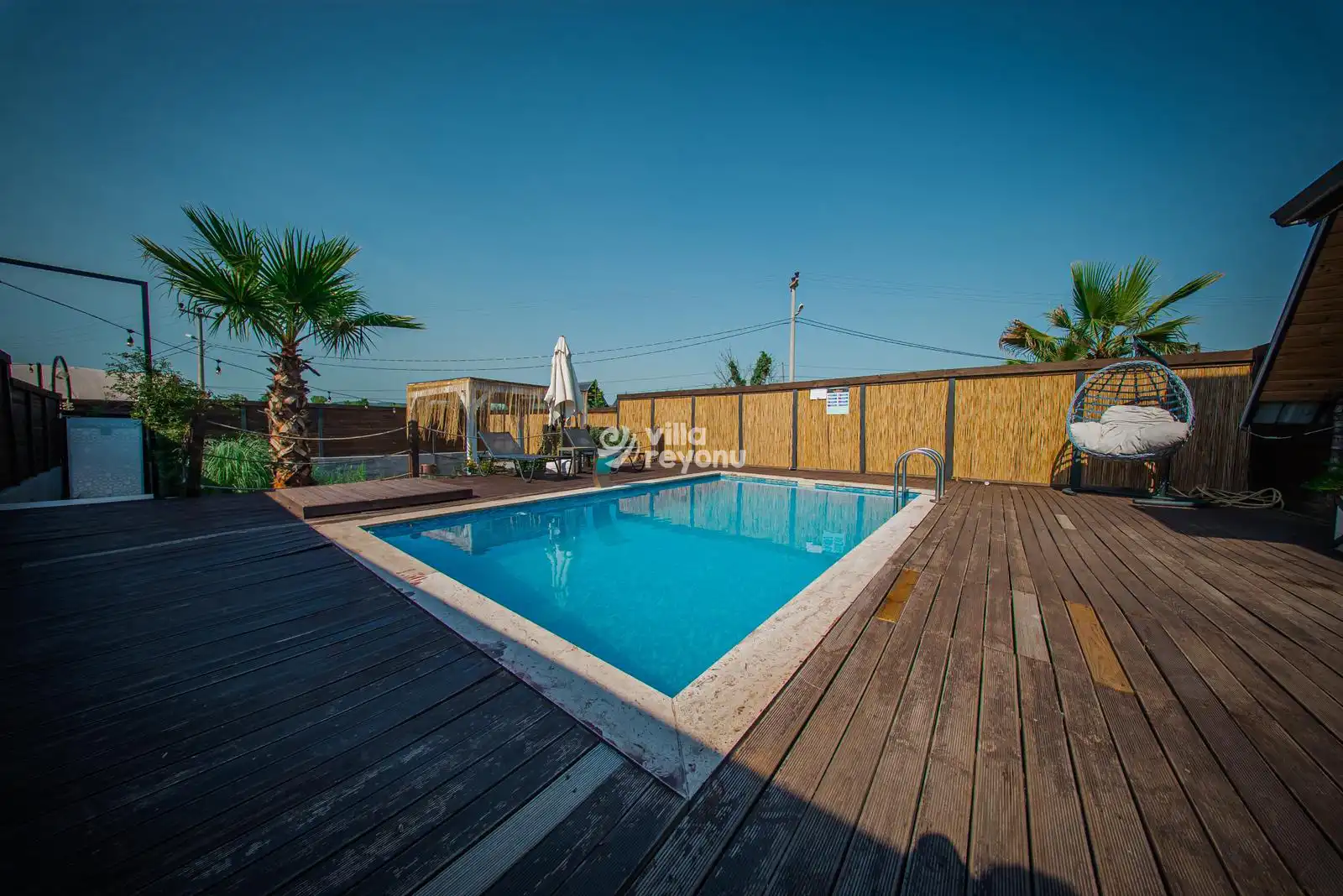 Bungalov Pamela 5 , Sapanca'nın eşsiz doğasında yeşillikler arasında konumlandırılmıştır. Büyüleyici atmosferiyle tatilinizi unutulmaz kılmak için eksiksiz bir şekilde dizayn edilen bungalovumuz, 4 kişilik yatak kapasitesiyle balayı çiftleri ve çekirdek aileler için oldukça ideal bir seçenek olacaktır. 2 yatak odası, 1 salon, 1 banyo/wc bulanan bungalovumuzda, özel havuz mevcuttur. Büyükşehirlerin stresinden uzaklaşmak ve üzerinizde biriken tüm yorgunluktan arınmak için Bungalov Pamela 5 sizleri bekliyor.