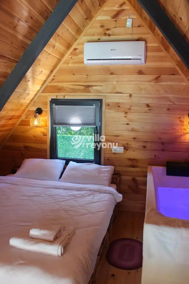 Bungalov Santos 2, Sapanca'nın eşsiz doğasında yeşillikler arasında konumlandırılmıştır. Büyüleyici atmosferiyle tatilinizi unutulmaz kılmak için eksiksiz bir şekilde dizayn edilen bungalovumuz, 4 kişilik yatak kapasitesiyle balayı çiftleri ve çekirdek aileler için oldukça ideal bir seçenek olacaktır. 2 yatak odası, 1 salon, 1 banyo/wc bulanan bungalovumuzda, özel havuz ve jakuzi bulunmaktadır. Büyükşehirlerin stresinden uzaklaşmak ve üzerinizde biriken tüm yorgunluktan arınmak için Bungalov Santos 2 sizleri bekliyor.