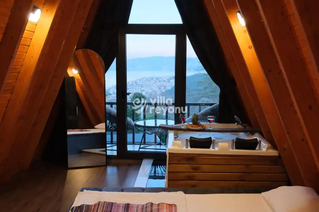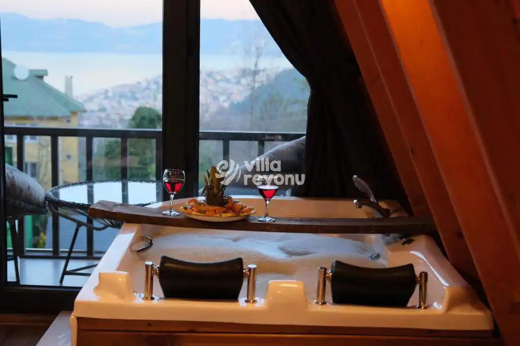 Bungalov Serra 2 , Sapanca'nın eşsiz doğasında yeşillikler arasında konumlandırılmıştır. Büyüleyici atmosferiyle tatilinizi unutulmaz kılmak için eksiksiz bir şekilde dizayn edilen bungalovumuz, 2 kişilik yatak kapasitesiyle balayı çiftleri ve çekirdek aileler için oldukça ideal bir seçenek olacaktır. 1 yatak odası, 1 salon, 1 banyo/wc bulanan bungalovumuzda, özel havuz ve jakuzi bulunmaktadır. Büyükşehirlerin stresinden uzaklaşmak ve üzerinizde biriken tüm yorgunluktan arınmak için Bungalov Serra 2 sizleri bekliyor.