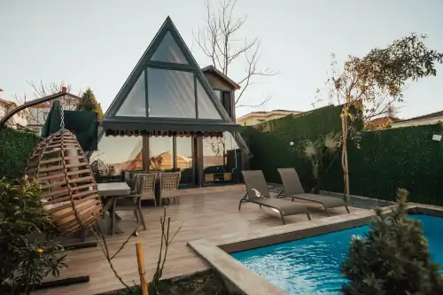 Bungalov Vibe 4, Sapanca'nın eşsiz doğasında yeşillikler arasında konumlandırılmıştır. Büyüleyici atmosferiyle tatilinizi unutulmaz kılmak için eksiksiz bir şekilde dizayn edilen bungalovumuz, 4 kişilik yatak kapasitesiyle balayı çiftleri ve çekirdek aileler için oldukça ideal bir seçenek olacaktır. 2 yatak odası, 1 salon, 1 banyo/wc bulanan bungalovumuzda, özel havuz ve jakuzi mevcuttur. Büyükşehirlerin stresinden uzaklaşmak ve üzerinizde biriken tüm yorgunluktan arınmak için Bungalov Vibe 4 sizleri bekliyor.
