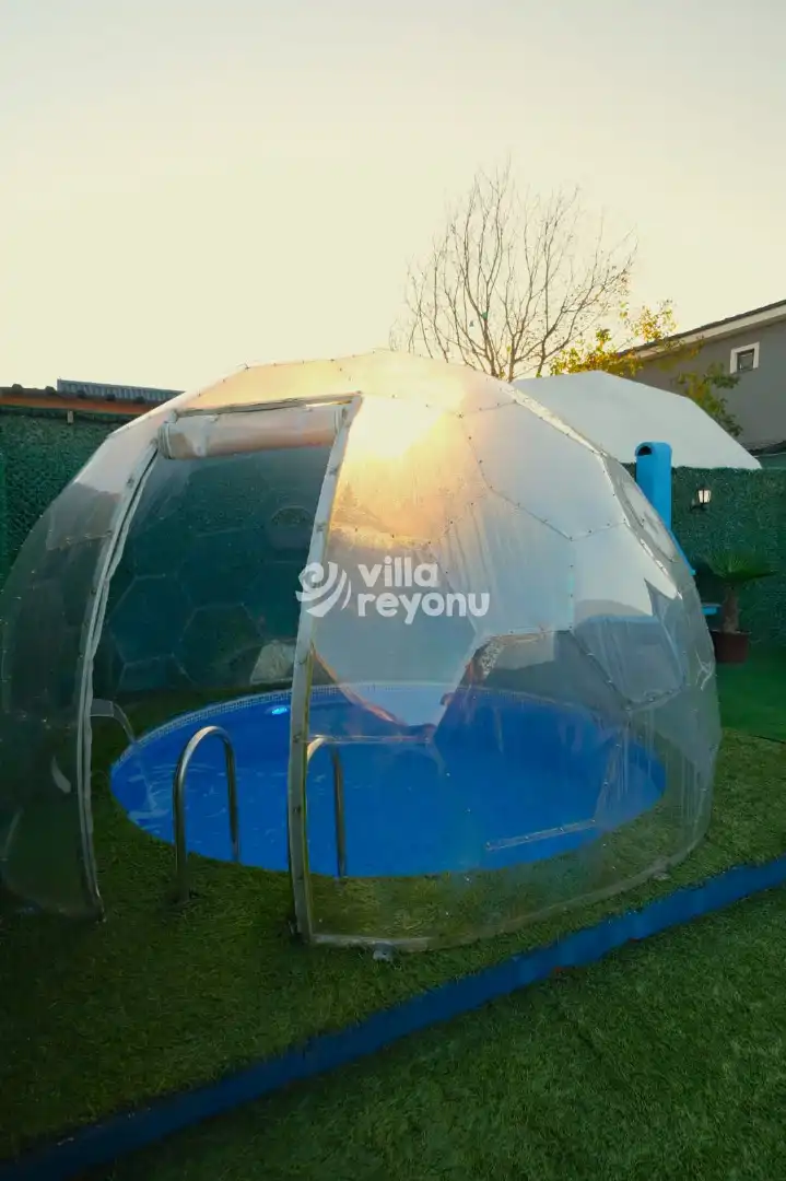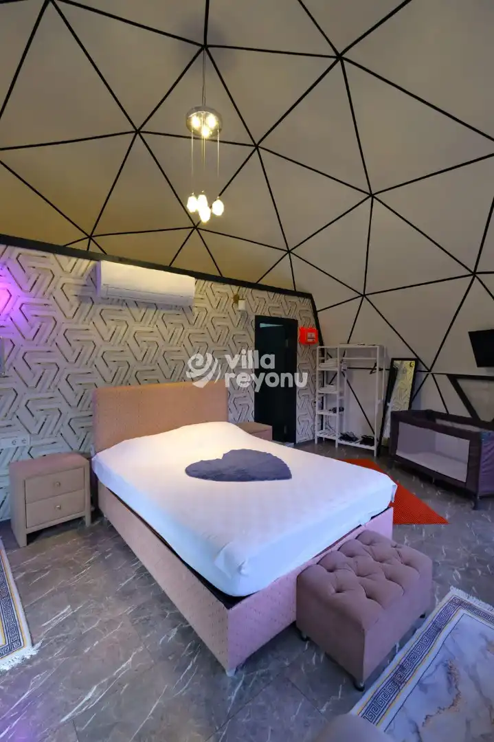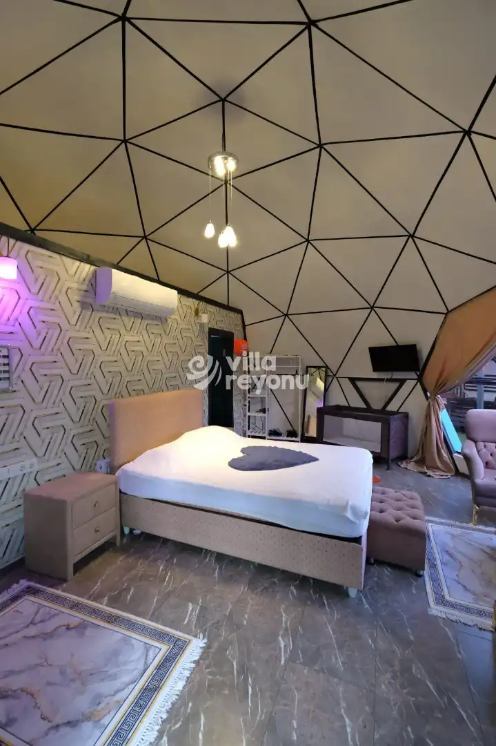 Türkiye'de yeni yeni popülerleşmeye başlayan kubbe glamping tasarımlı evlerimiz, muhteşem konsept ile dikkat çekmektedir. Kubbe Mavili, Sapanca mevkisinde yer almaktadır. 2 adet yatak ve 4 kişilik konaklama imkanı vardır. Modern ve oldukça farklı bir tasarıma sahip olan evimizde sizler için tüm detaylar düşünülmüştür. Dome Mavili, doğa manzarası ile siz değerli vatandaşlara oldukça keyifli bir tatil fırsatı sunuyor.