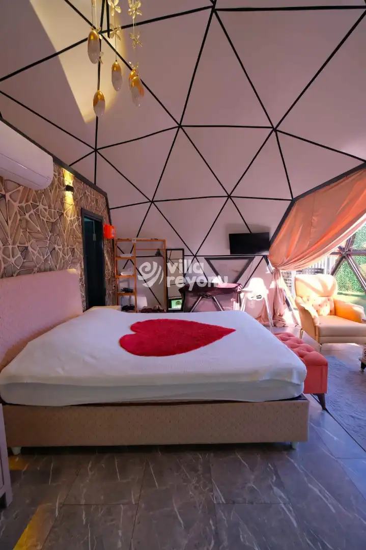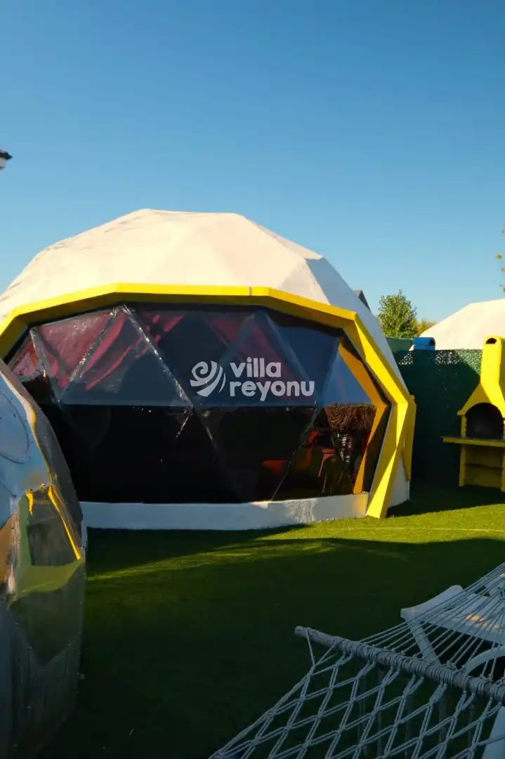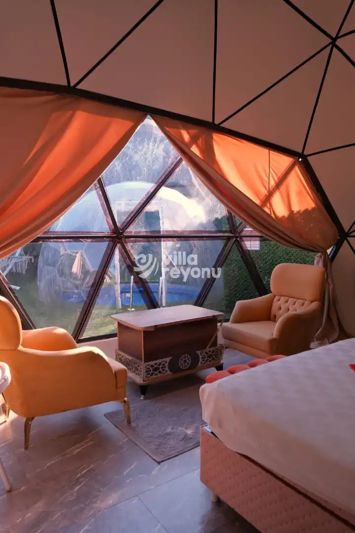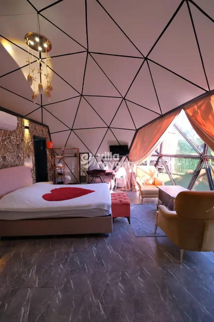 Türkiye'de yeni yeni popülerleşmeye başlayan glamping tasarımlı evlerimiz, muhteşem konsept ile dikkat çekmektedir. Dome Sarılı, Sapanca mevkisinde yer almaktadır. 2 adet yatak ve 4 kişilik konaklama imkanı vardır. Modern ve oldukça farklı bir tasarıma sahip olan evimizde sizler için tüm detaylar düşünülmüştür. Dome Sarılı, doğa manzarası ile siz değerli vatandaşlara oldukça keyifli bir tatil fırsatı sunuyor.