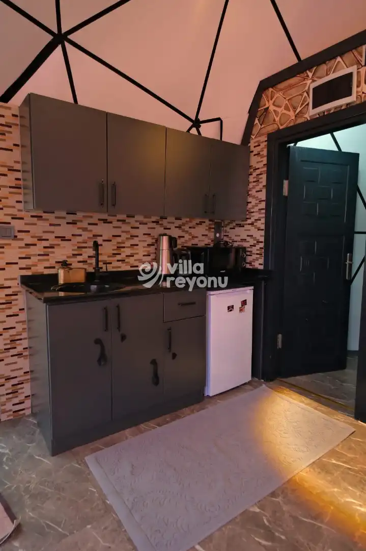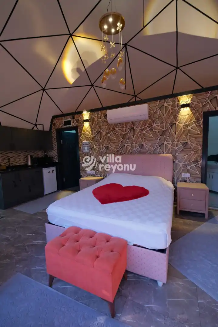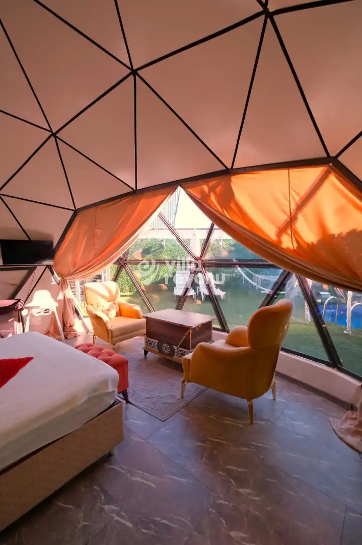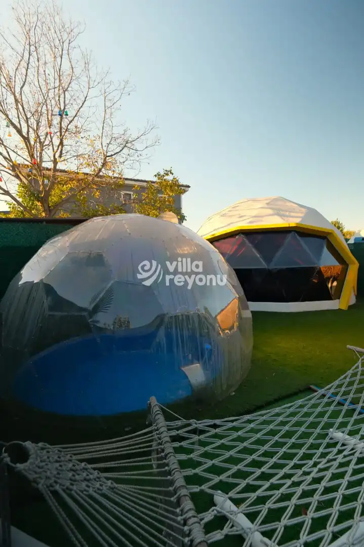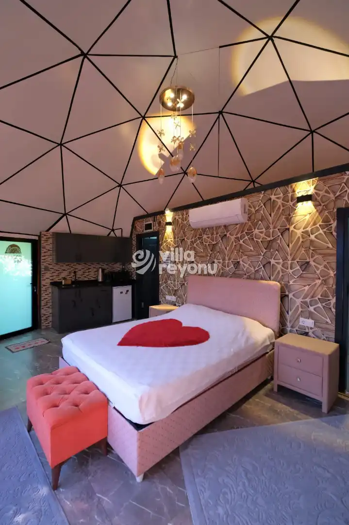 Türkiye'de yeni yeni popülerleşmeye başlayan glamping tasarımlı evlerimiz, muhteşem konsept ile dikkat çekmektedir. Dome Sarılı, Sapanca mevkisinde yer almaktadır. 2 adet yatak ve 4 kişilik konaklama imkanı vardır. Modern ve oldukça farklı bir tasarıma sahip olan evimizde sizler için tüm detaylar düşünülmüştür. Dome Sarılı, doğa manzarası ile siz değerli vatandaşlara oldukça keyifli bir tatil fırsatı sunuyor.