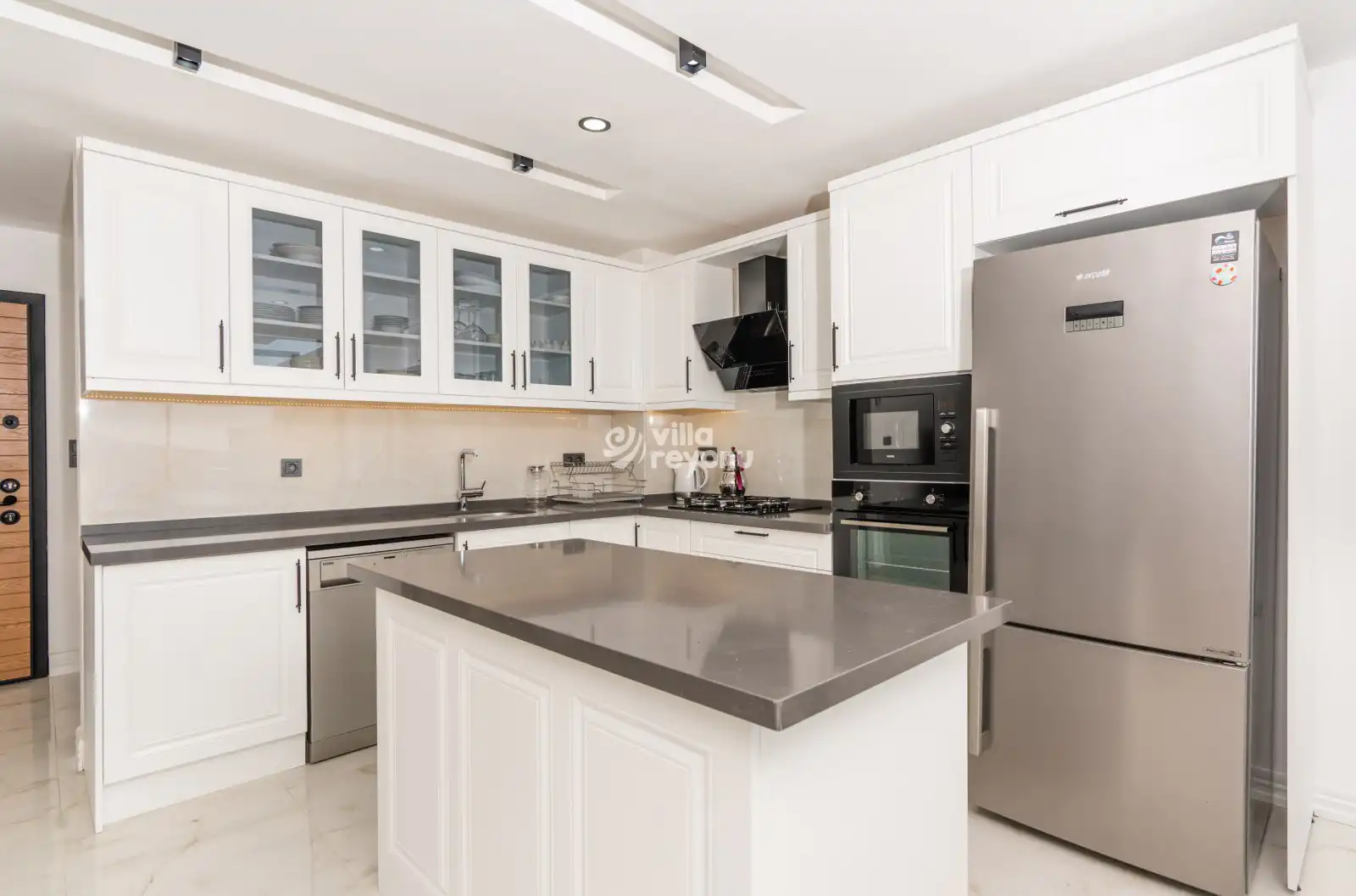 • Bu evin resimleri sitemizde yer alan diğer evlerin resimleri gibi görüntüyü ekrana sığdırmak amacıyla, geniş açılı lens ve profesyonel fotoğraf makinaları ile çekilmektedir. Bu nedenle resimler üzerinde yer alan objeler gerçeğinden daha büyük olarak görülebilmektedir.