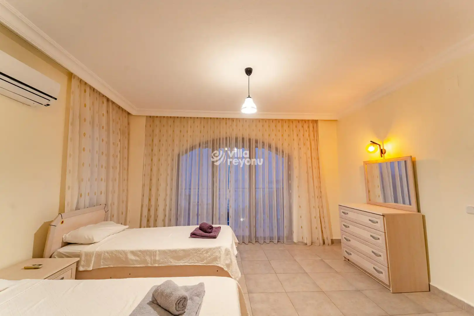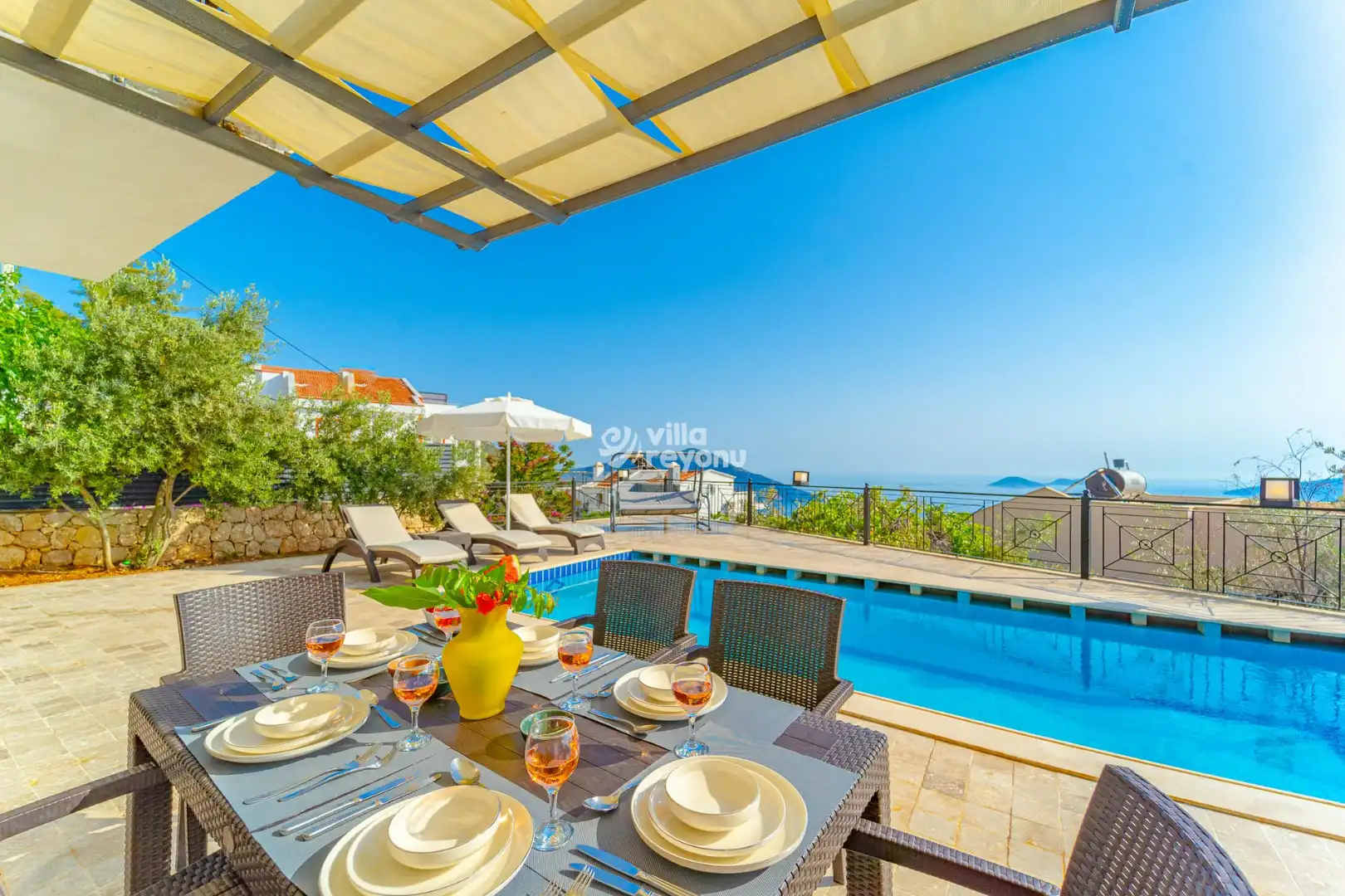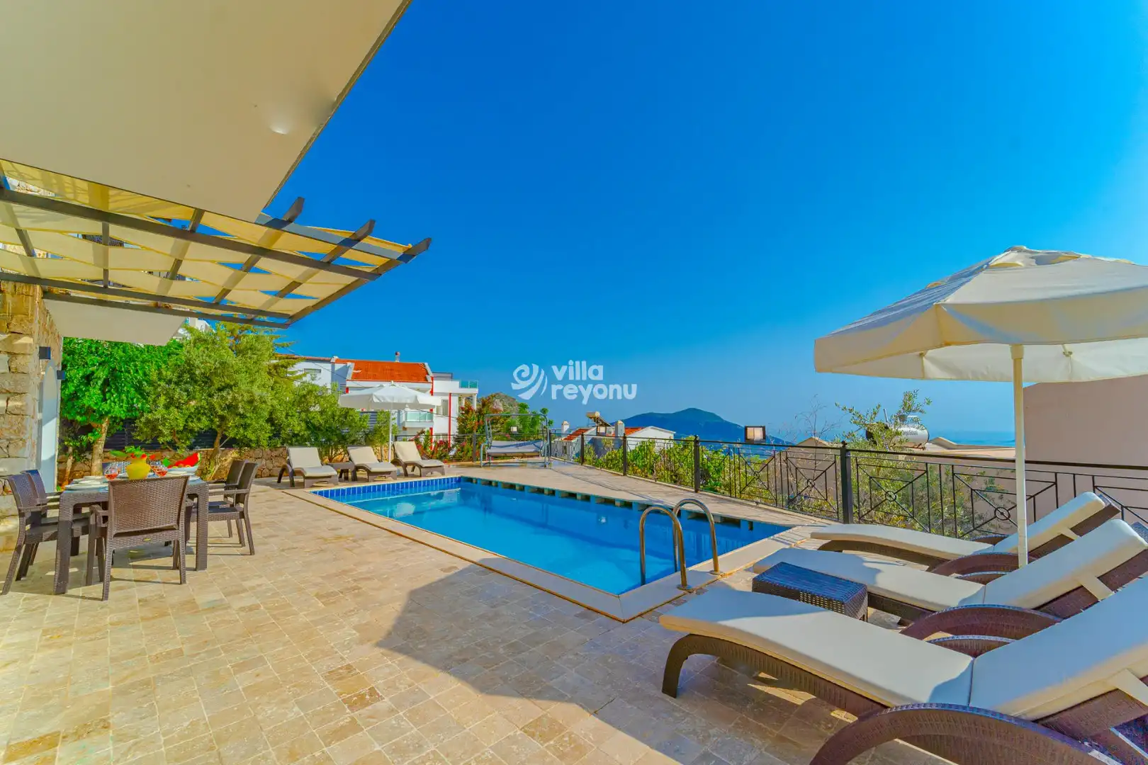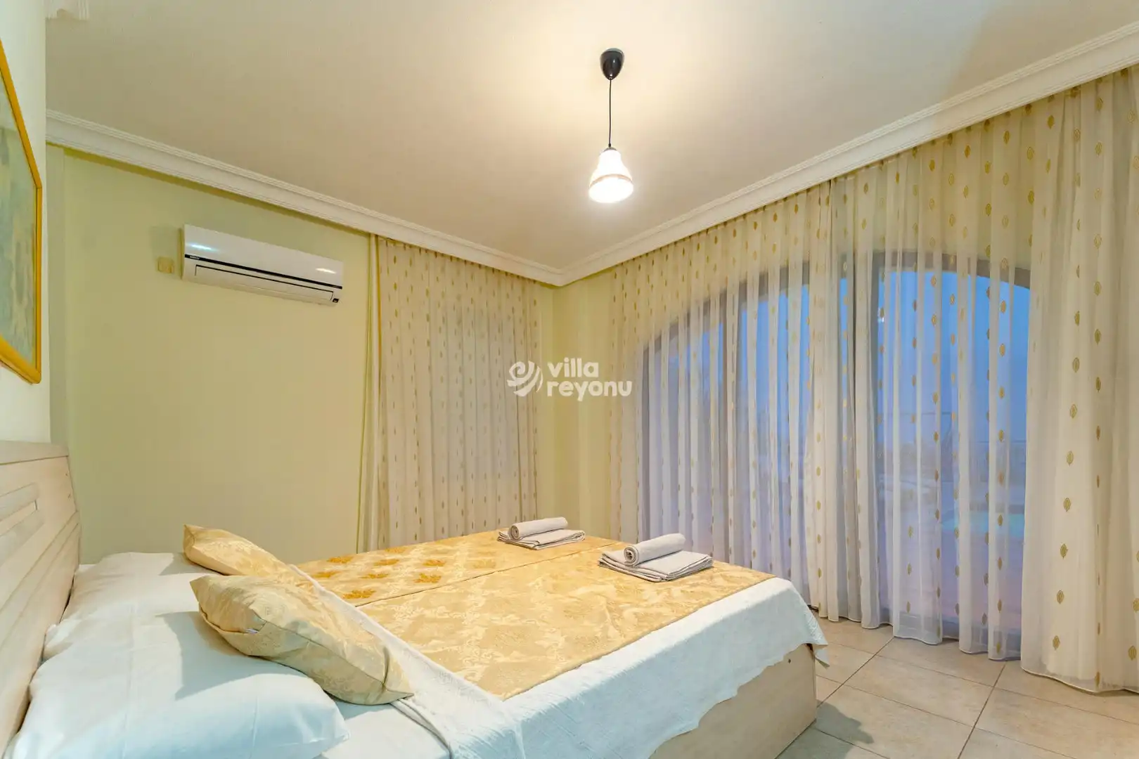 Kalkan Kızıltaş bölgesinde, konumu ve manzarasıyla son derece davetkar bir atmosfer sunan Villa Aldora, 4 yatak odası ve 8 kişilik konaklama kapasitesiyle konuklarını ağırlamaya hazır. Yaz aylarında denize ve merkeze yakın bir villa arayan kalabalık aileler ve arkadaş grupları için mükemmel bir seçenek olan Villa Aldora, rahat bir tatil deneyimi sunuyor. Taş mimarisiyle dikkat çeken villamızın geniş bahçesinde, yüzme havuzu, şezlonglar, langırt, salıncak, oturma alanları ve yemek masası bulunmaktadır. Plaja sadece 1 km mesafede yer alan villa, aynı zamanda marketler, restoranlar, toplu taşıma araçları ve eğlence mekanlarına da yürüyüş mesafesindedir. Yere kadar uzanan büyük pencereler sayesinde, villanın her odasından kesintisiz deniz manzarasını keyifle izleyebilirsiniz.