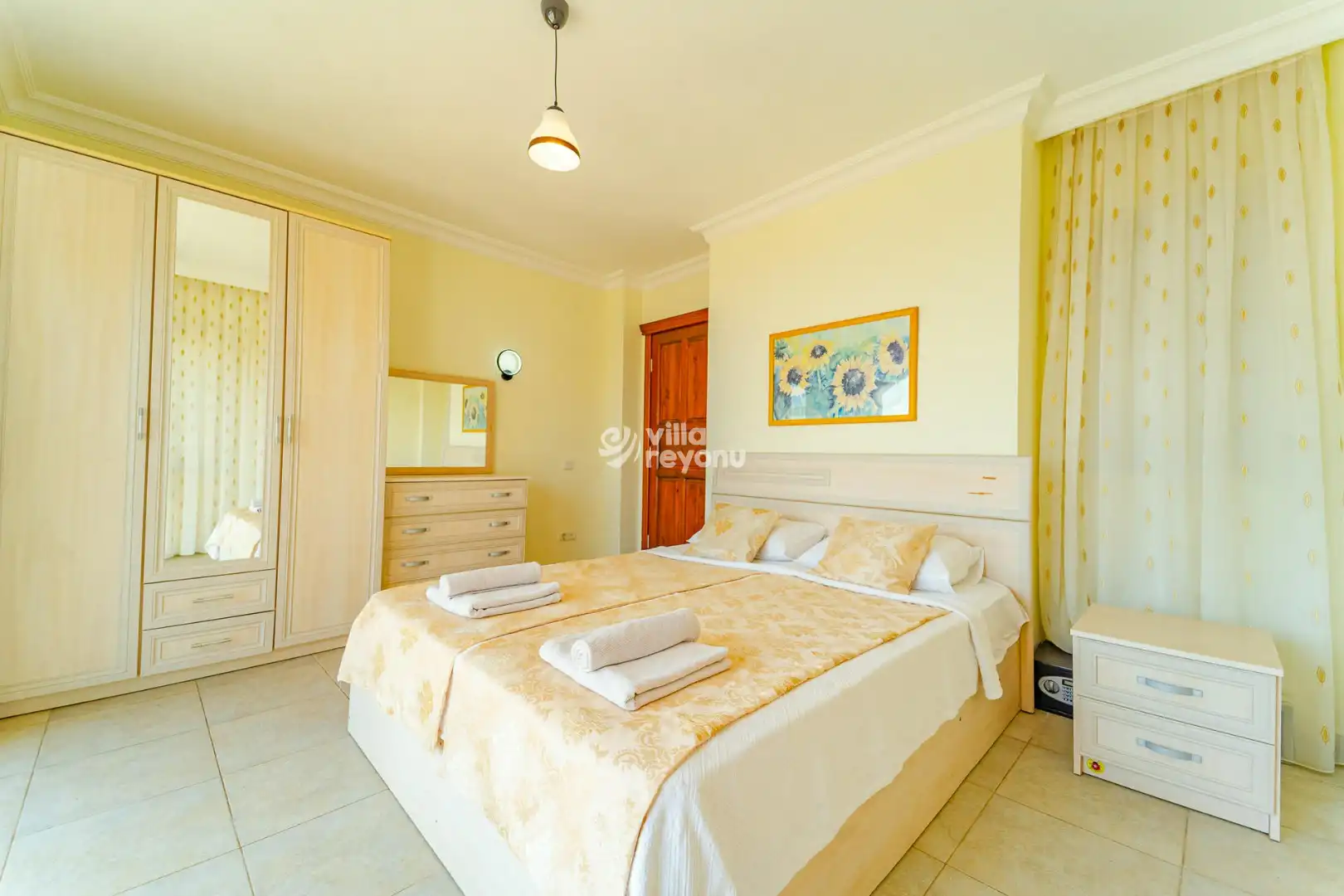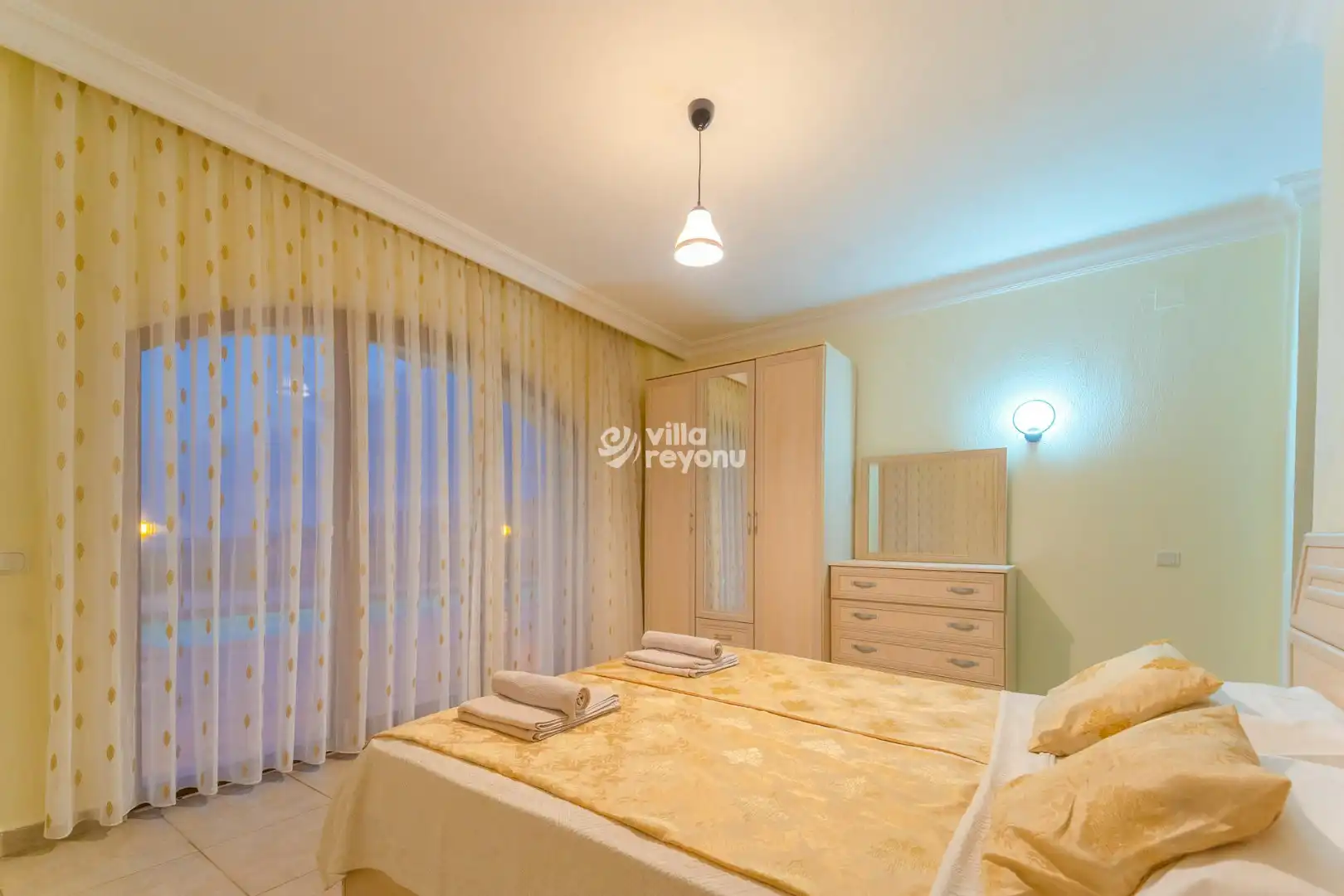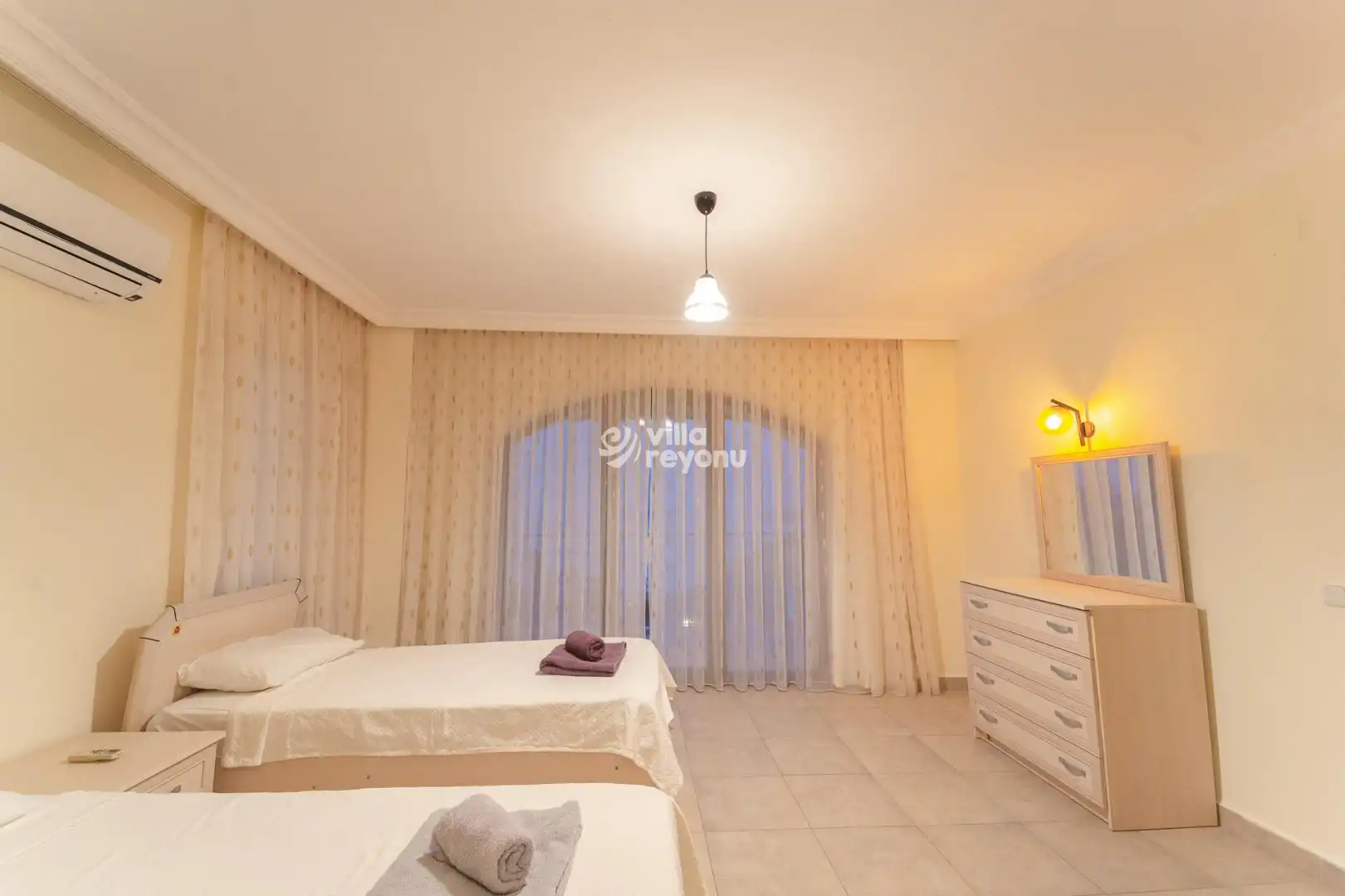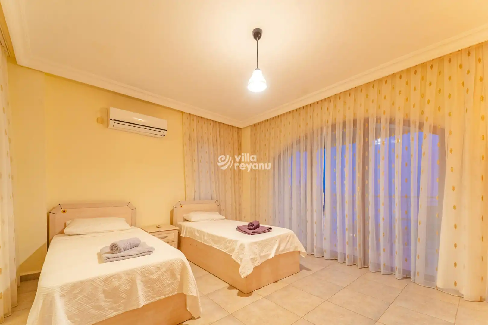 Kalkan Kızıltaş bölgesinde, konumu ve manzarasıyla son derece davetkar bir atmosfer sunan Villa Aldora, 4 yatak odası ve 8 kişilik konaklama kapasitesiyle konuklarını ağırlamaya hazır. Yaz aylarında denize ve merkeze yakın bir villa arayan kalabalık aileler ve arkadaş grupları için mükemmel bir seçenek olan Villa Aldora, rahat bir tatil deneyimi sunuyor. Taş mimarisiyle dikkat çeken villamızın geniş bahçesinde, yüzme havuzu, şezlonglar, langırt, salıncak, oturma alanları ve yemek masası bulunmaktadır. Plaja sadece 1 km mesafede yer alan villa, aynı zamanda marketler, restoranlar, toplu taşıma araçları ve eğlence mekanlarına da yürüyüş mesafesindedir. Yere kadar uzanan büyük pencereler sayesinde, villanın her odasından kesintisiz deniz manzarasını keyifle izleyebilirsiniz.