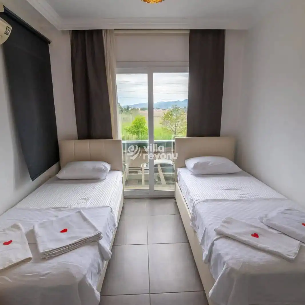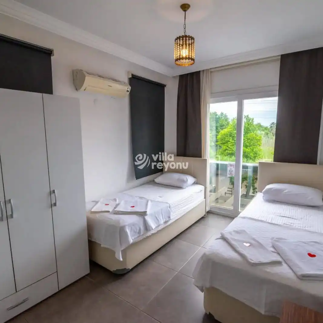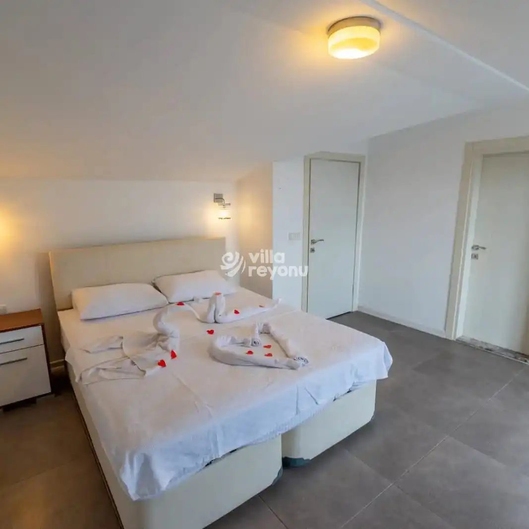 Villa, 3 yatak odalı olup toplamda 6 kişilik konaklama kapasitesine sahiptir. 1. yatak odasında çift kişilik rahat bir yatak, klima, elbise dolabı ve özel ebeveyn banyosu bulunur. 2. ve 3. yatak odalarında ise her biri iki tek kişilik yatak, klima, elbise dolabı ve ebeveyn banyosu ile donatılmıştır.