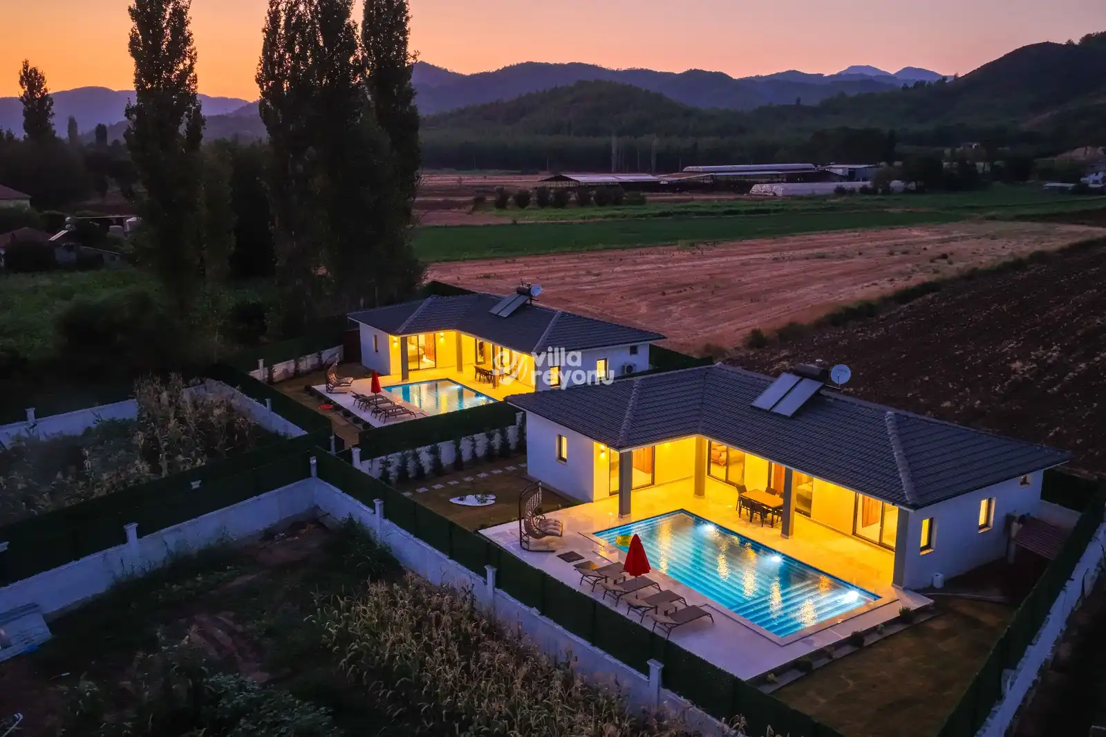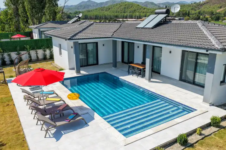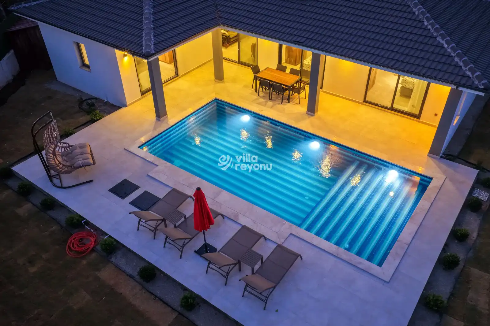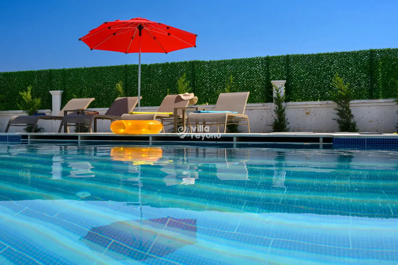 3 yatak odası ve 6 kişilik kapasitesiyle ailelere hitap eden villamızda, özel havuz ve korunaklı bahçe sayesinde tamamen size ait huzurlu bir ortamda tatil yapabilirsiniz. Ferah ve aydınlık yaşam alanları, şık mobilyaları ve ihtiyaçlarınıza cevap verecek mutfağıyla konfor ön planda tutulmuştur.