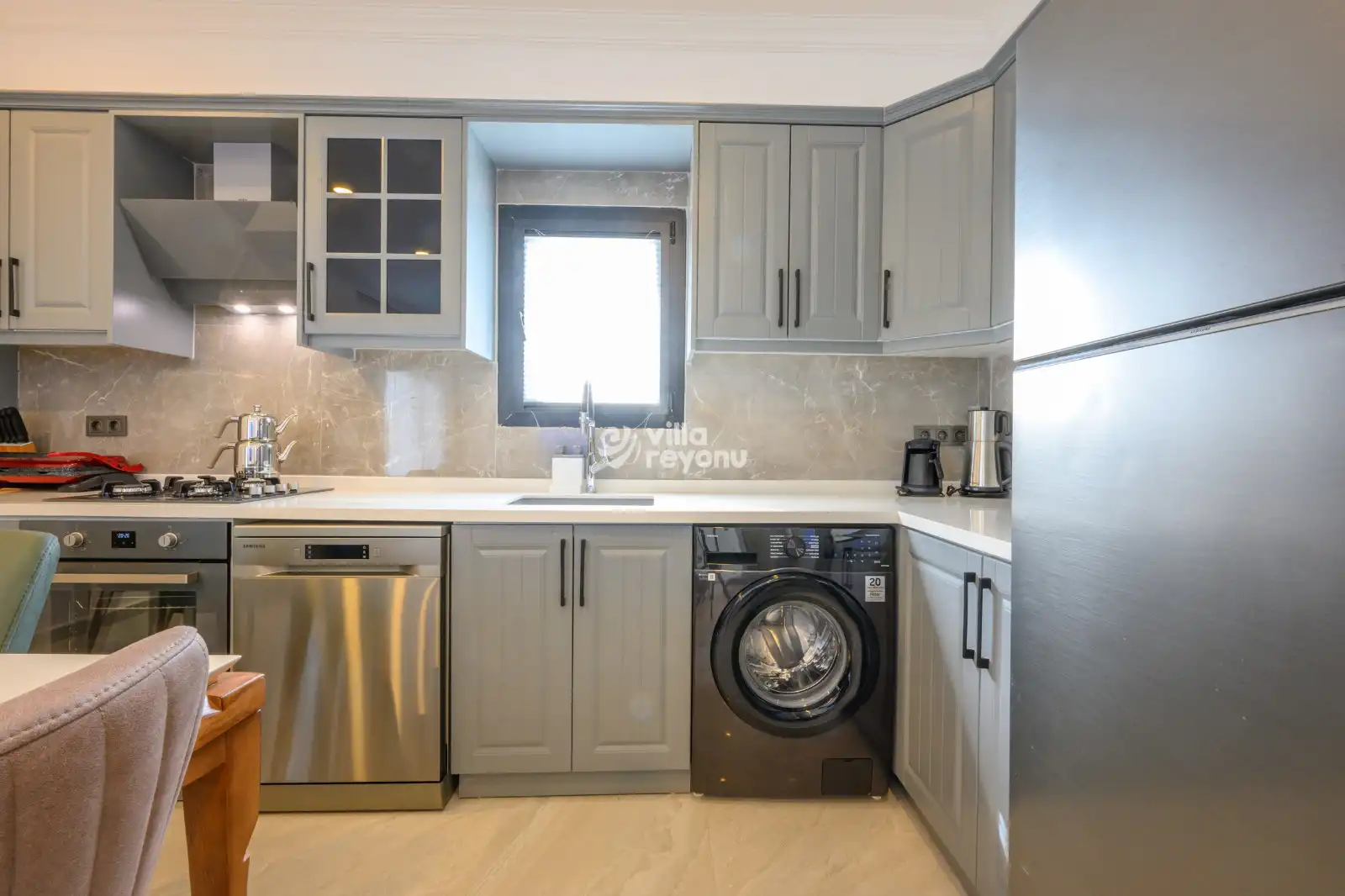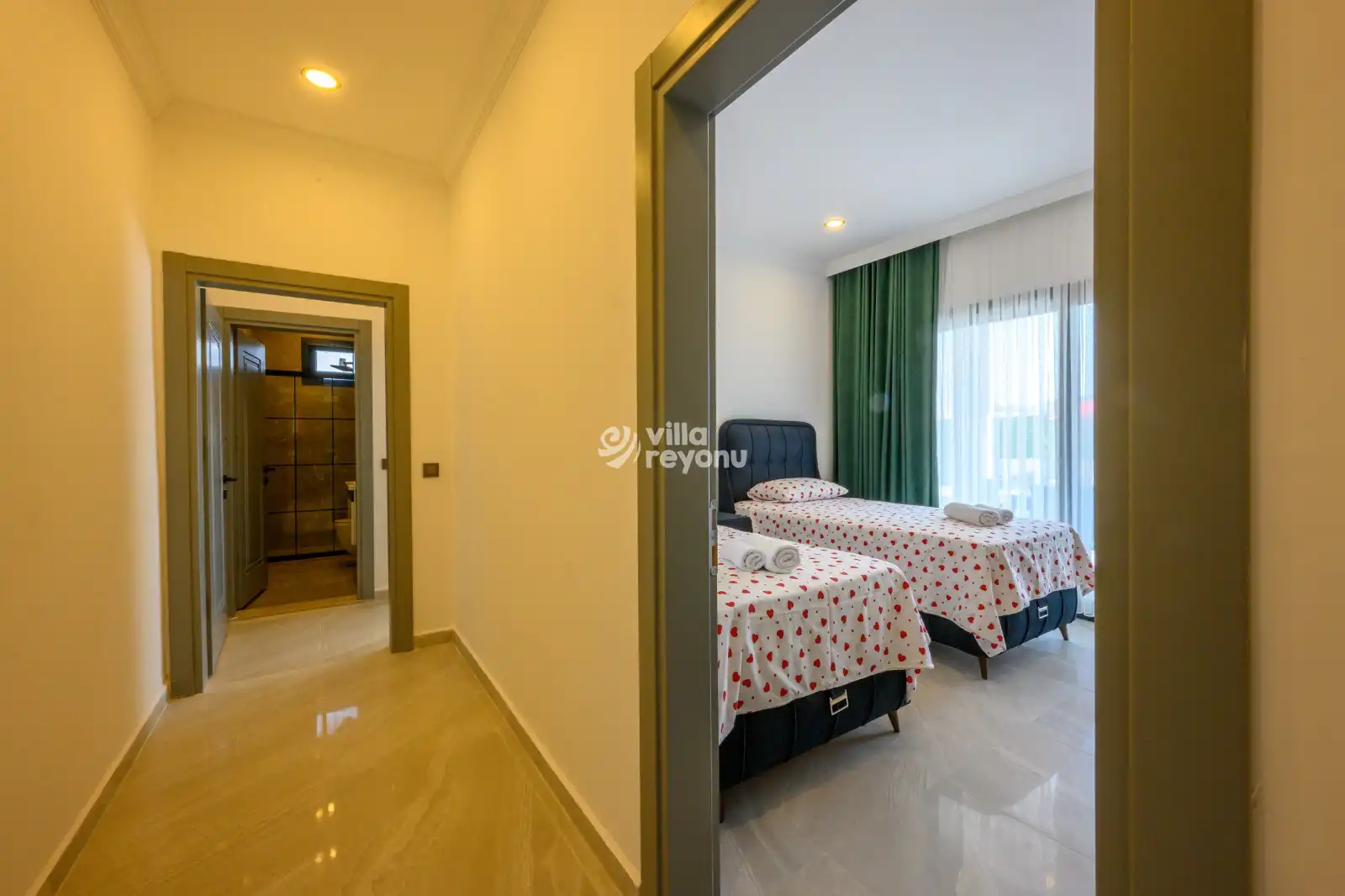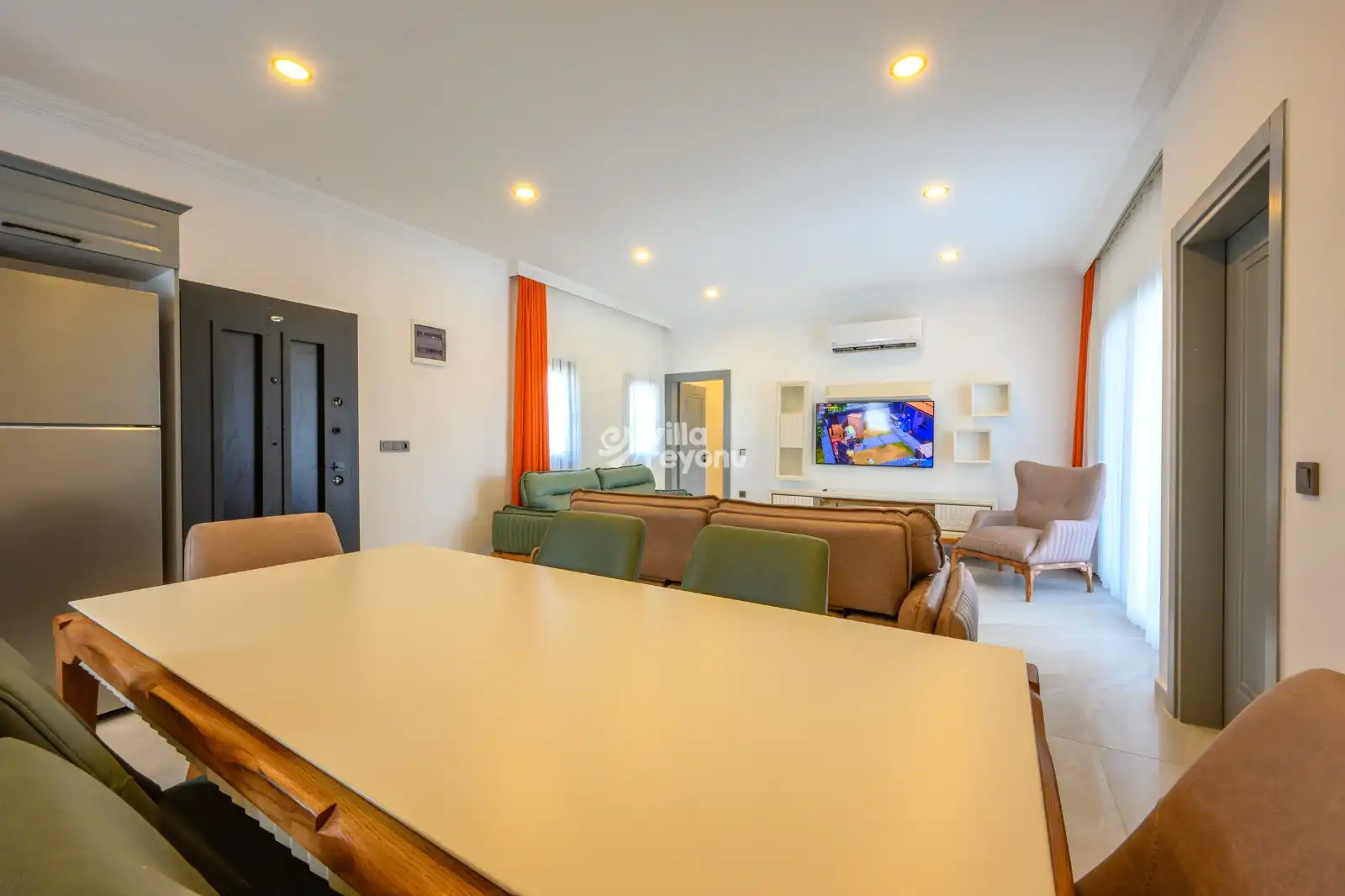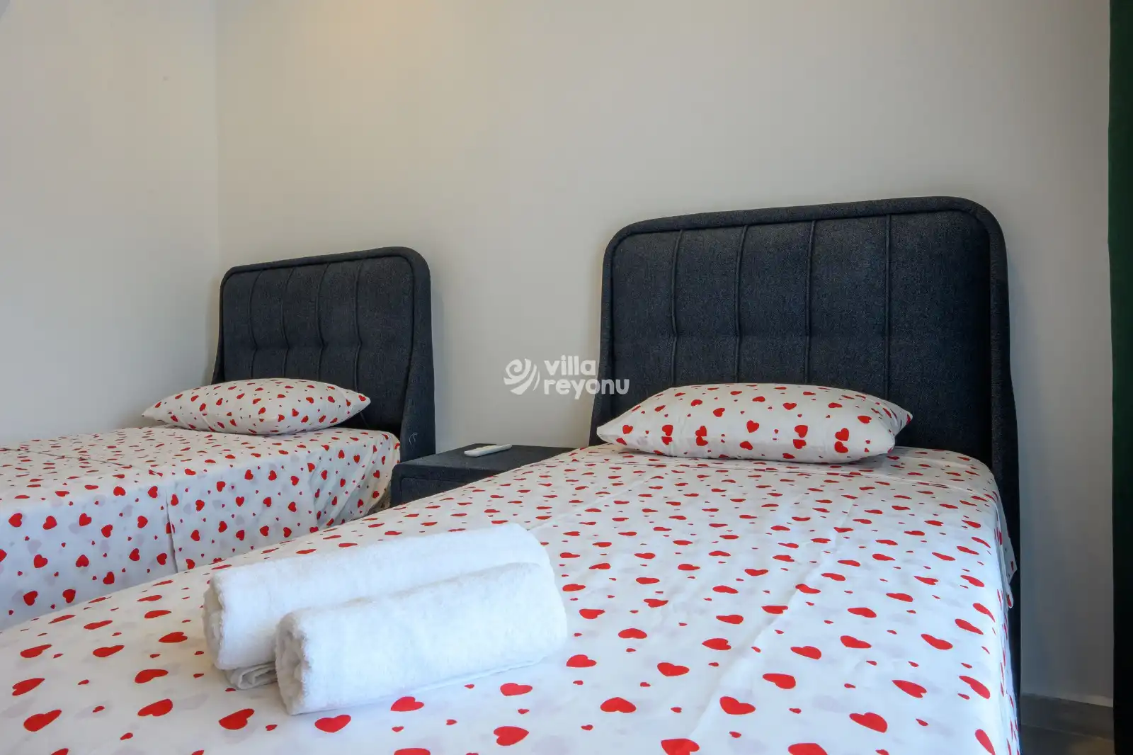 3 yatak odası ve 6 kişilik kapasitesiyle ailelere hitap eden villamızda, özel havuz ve korunaklı bahçe sayesinde tamamen size ait huzurlu bir ortamda tatil yapabilirsiniz. Ferah ve aydınlık yaşam alanları, şık mobilyaları ve ihtiyaçlarınıza cevap verecek mutfağıyla konfor ön planda tutulmuştur.