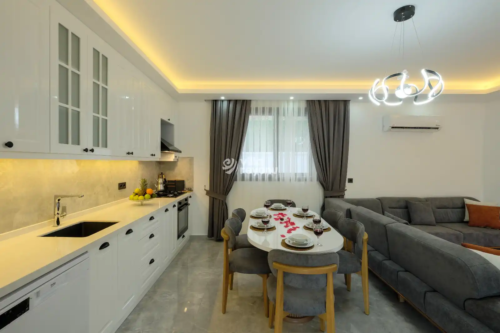 Bu evin resimleri sitemizde yer alan diğer evlerin resimleri gibi görüntüyü ekrana sığdırmak amacıyla, geniş açılı lens ve profesyonel fotoğraf makinaları ile çekilmektedir. Bu nedenle resimler üzerinde yer alan objeler gerçeğinden daha büyük olarak görülebilmektedir.