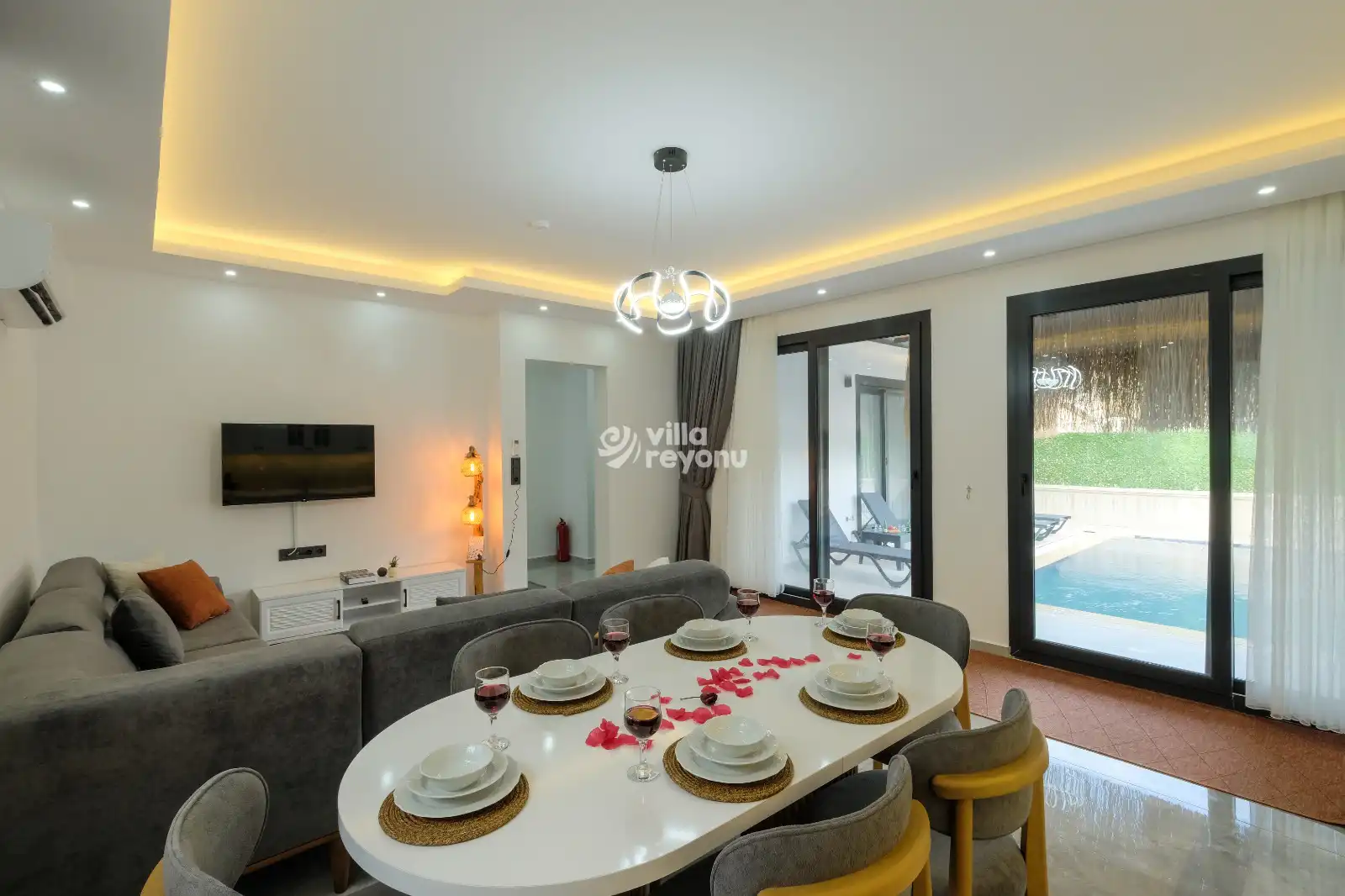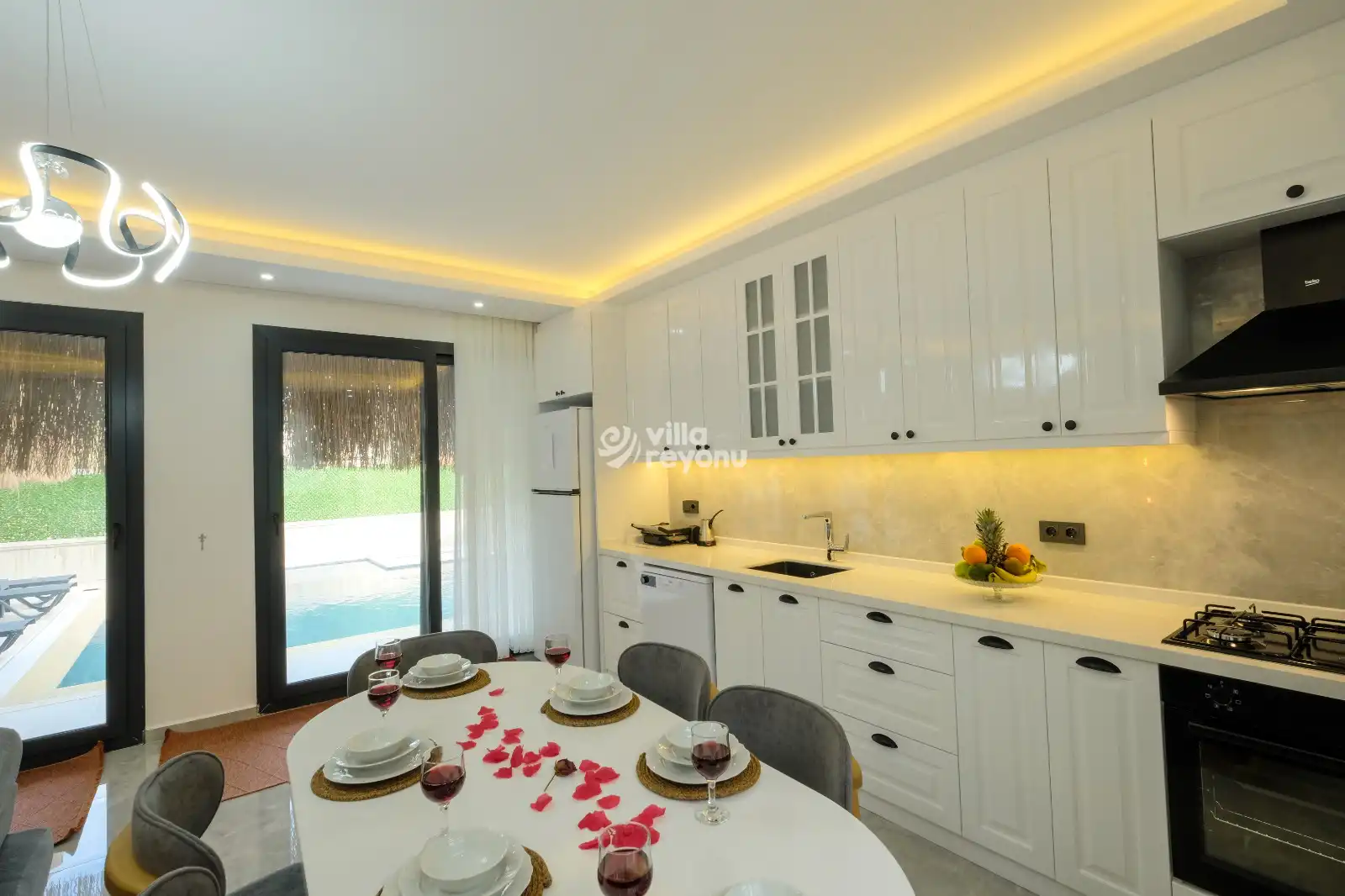* Doğa içerisinde bulunan tüm villalarımızda düzenli olarak ilaçlama yapılmaktadır. Ancak yine de çevrede kelebek, böcek, sinek vb. bulunma ihtimali bulunmaktadır.