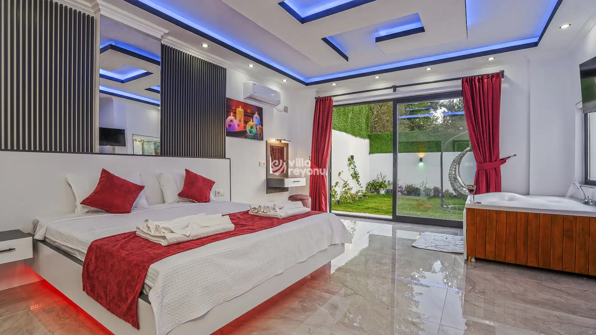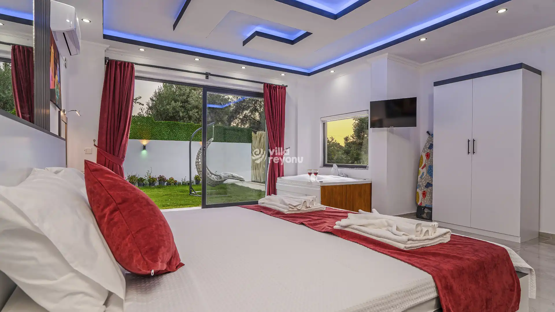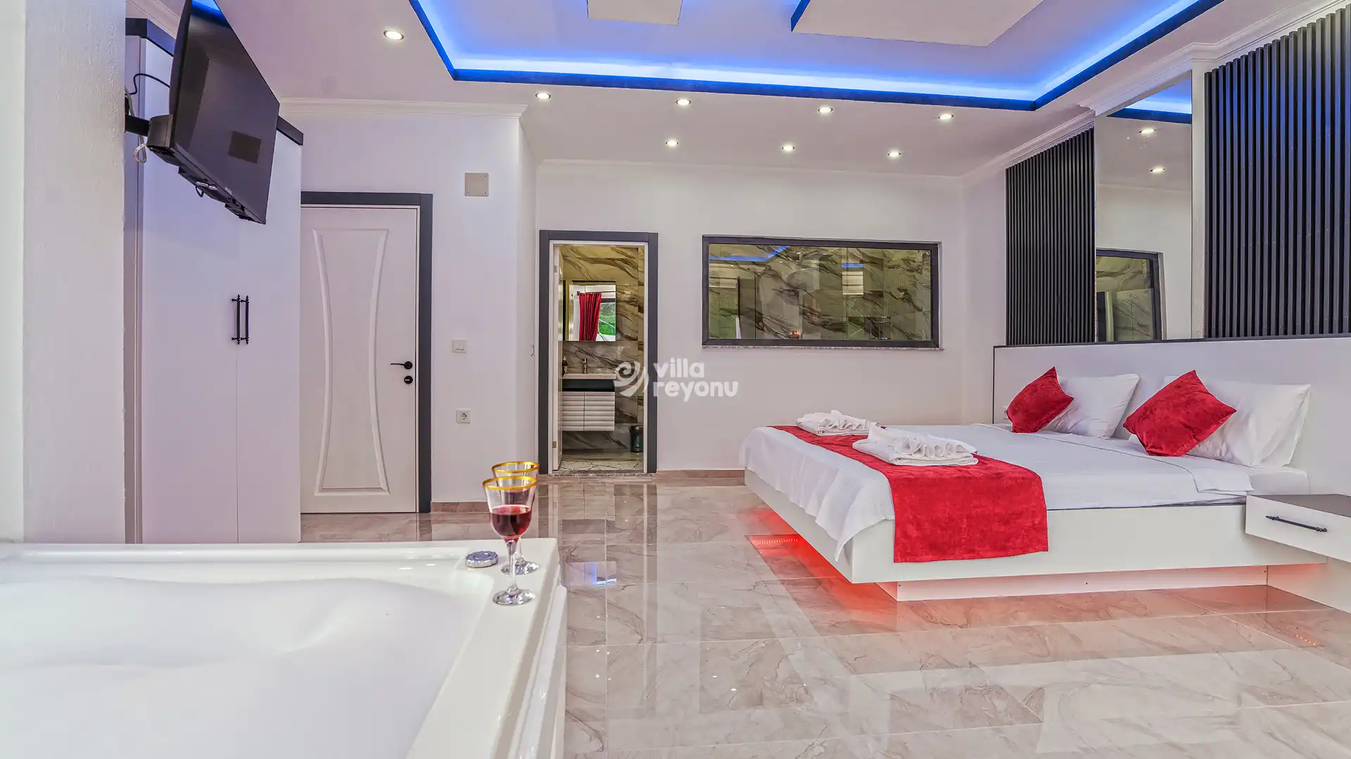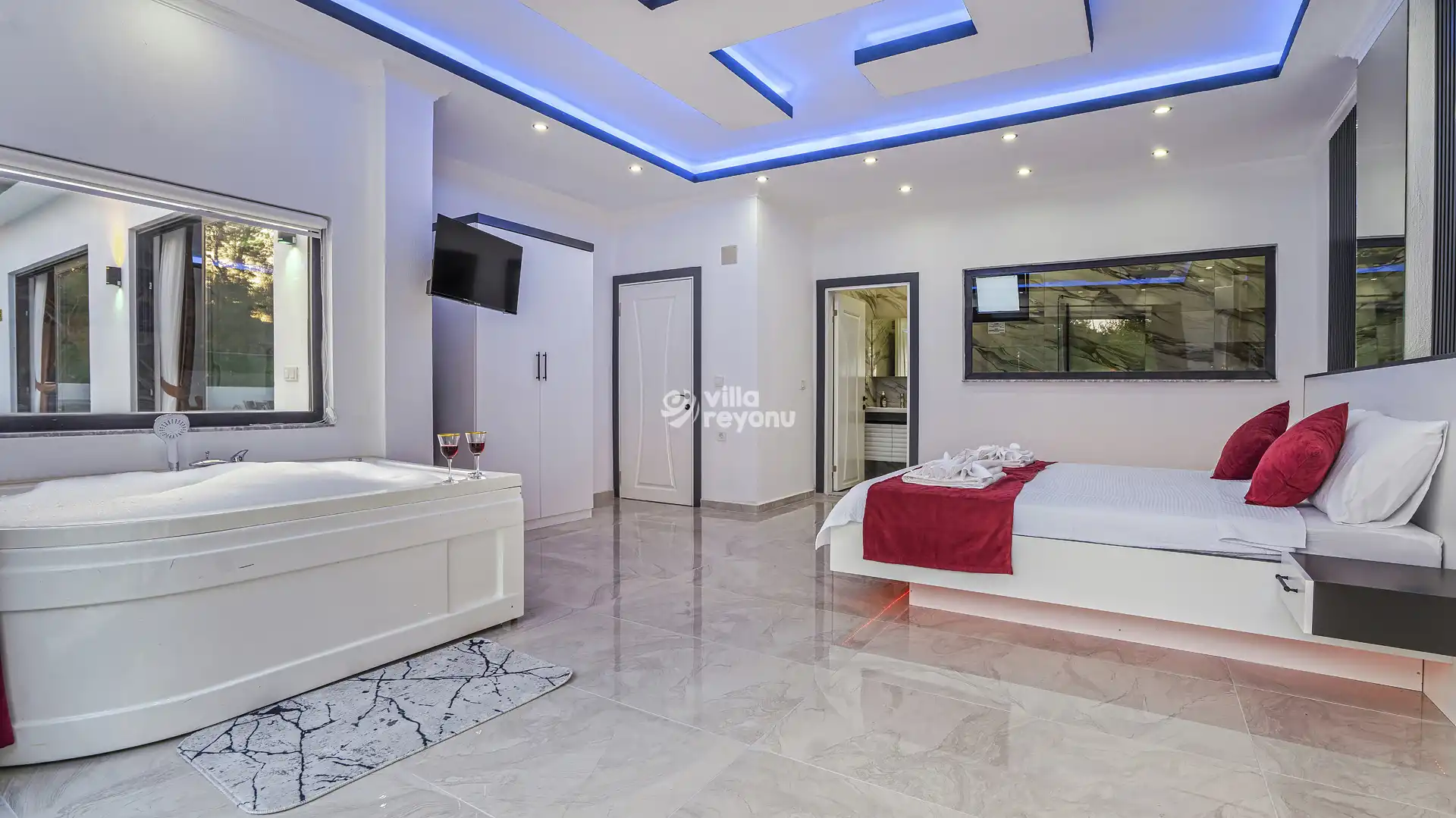 Birinci yatak odası: Ebeveyn odasında bir adet çift kişilik yatak, özel banyo ve jakuzi bulunmaktadır.
