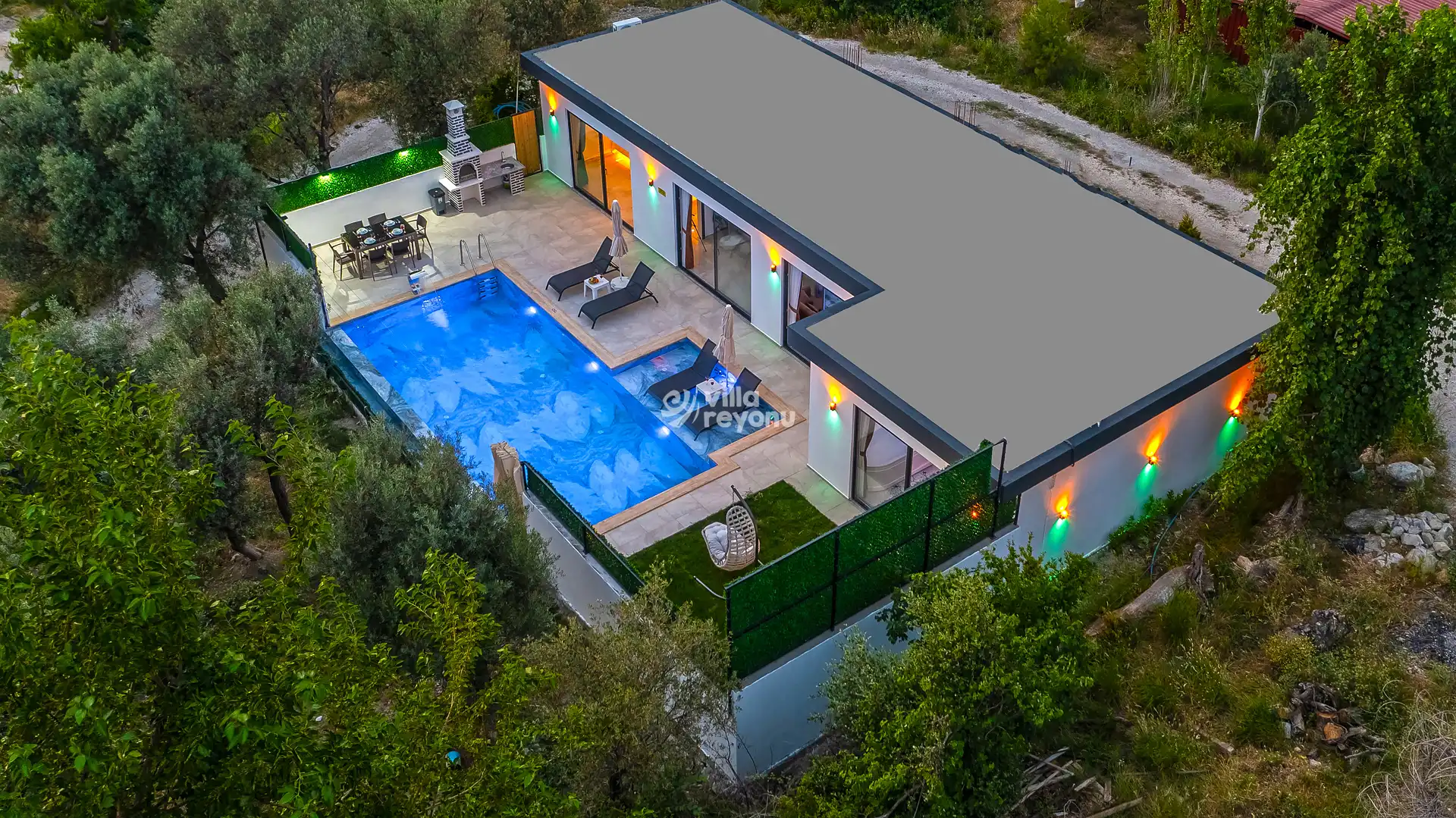 Villanın geniş ve korunaklı havuz terasında gün boyunca keyif yapabilir, akşamları ise yıldızların altında unutulmaz bir tatilin tadını çıkarabilirsiniz. Ayrıca villa, çevredeki restoranlara ve doğal güzelliklere kısa bir sürüş mesafesindedir.