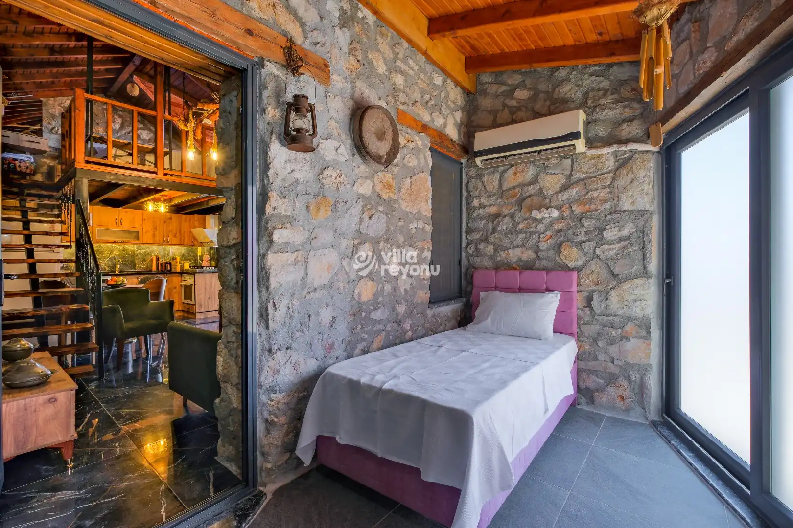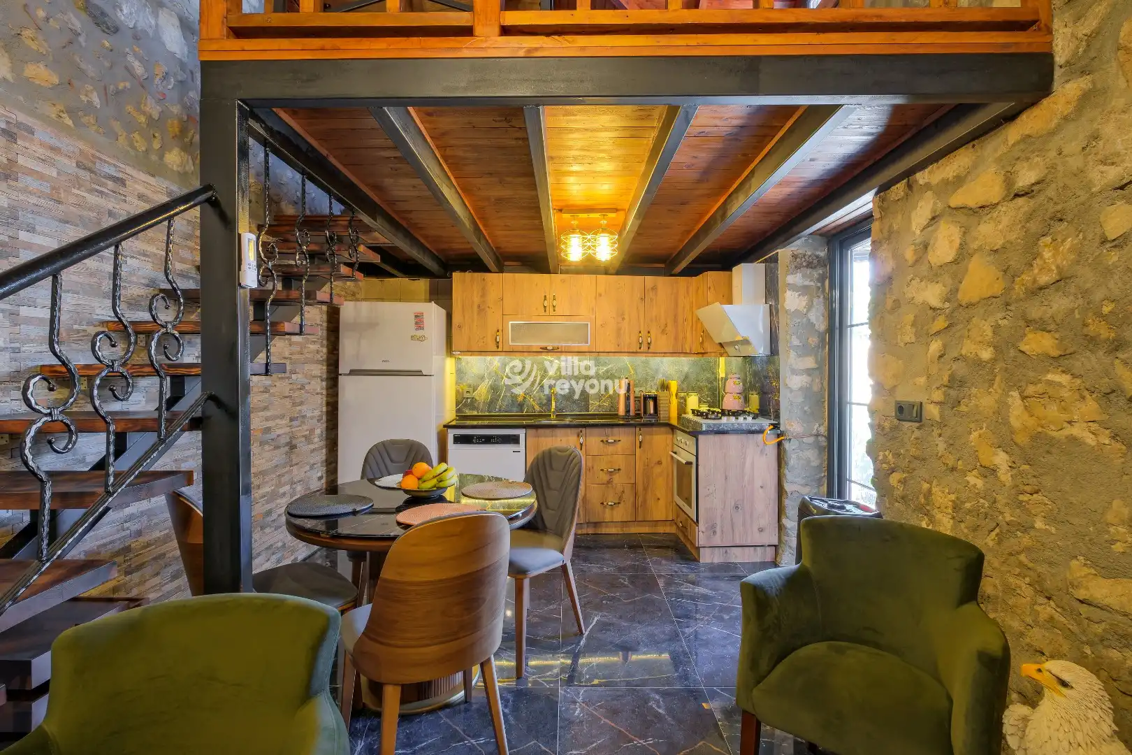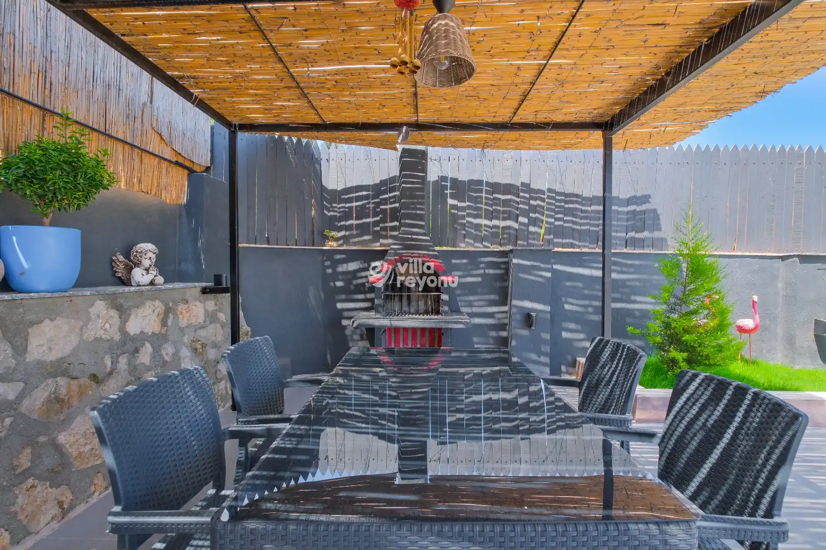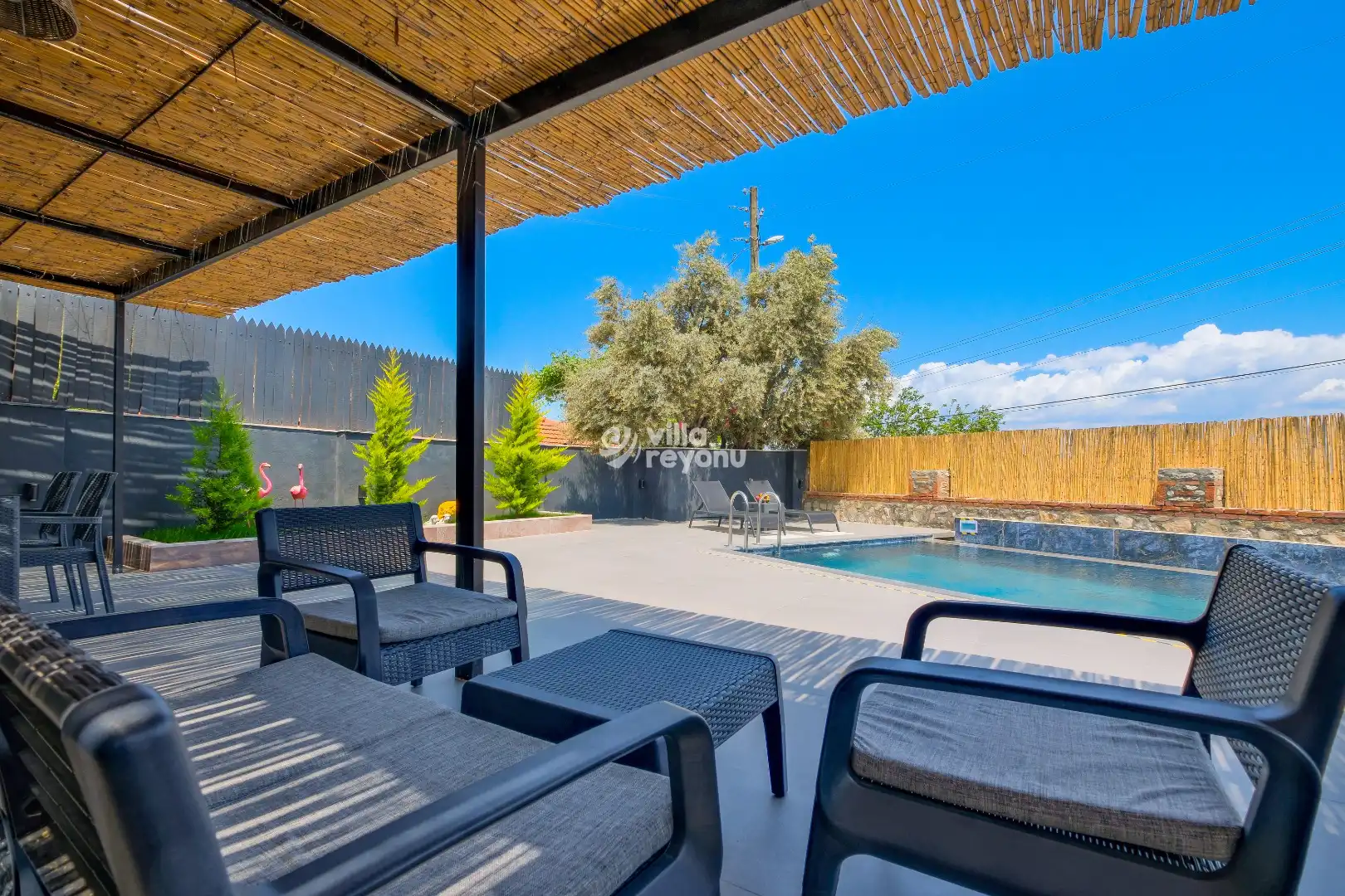 Villanın öne çıkan özelliklerinden biri, geniş ve ferah verandasıdır. Bu özel alan; açık havada keyifli akşam yemekleri, dinlendirici kahve molaları veya sadece doğanın sesleri eşliğinde rahatlamanız için ideal bir ortam sunar.