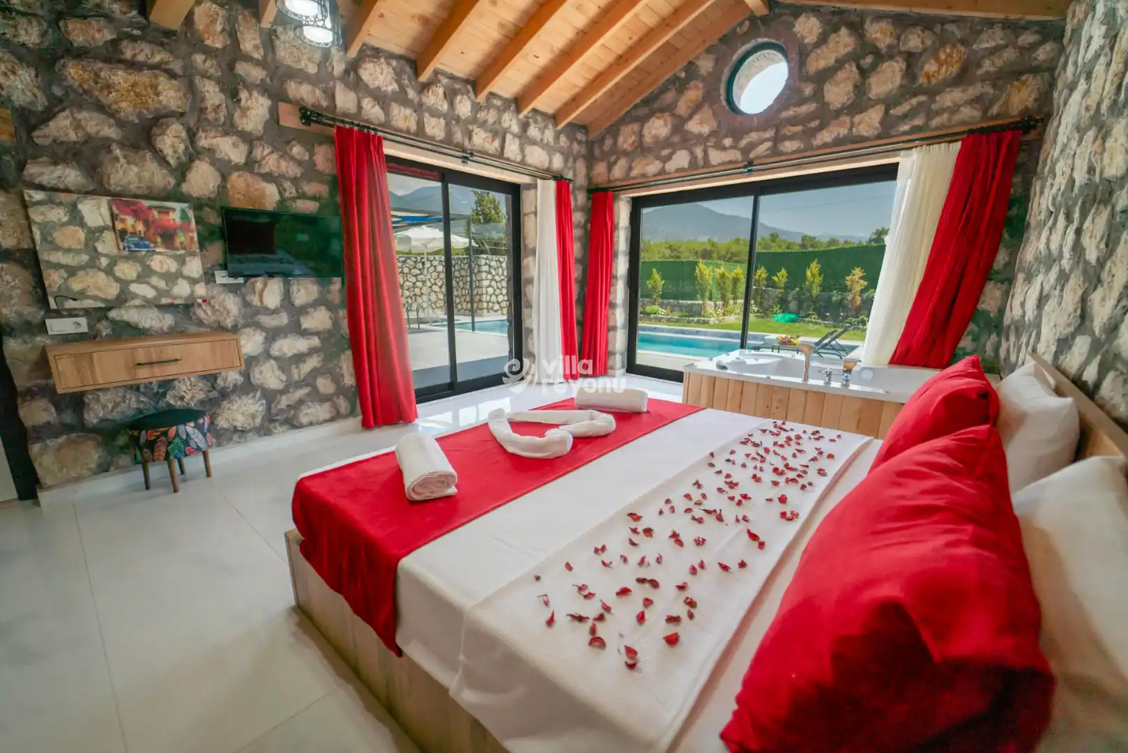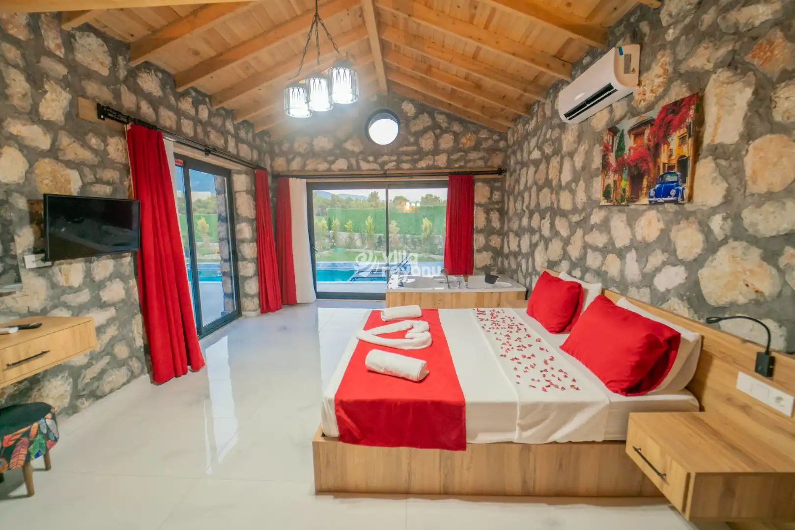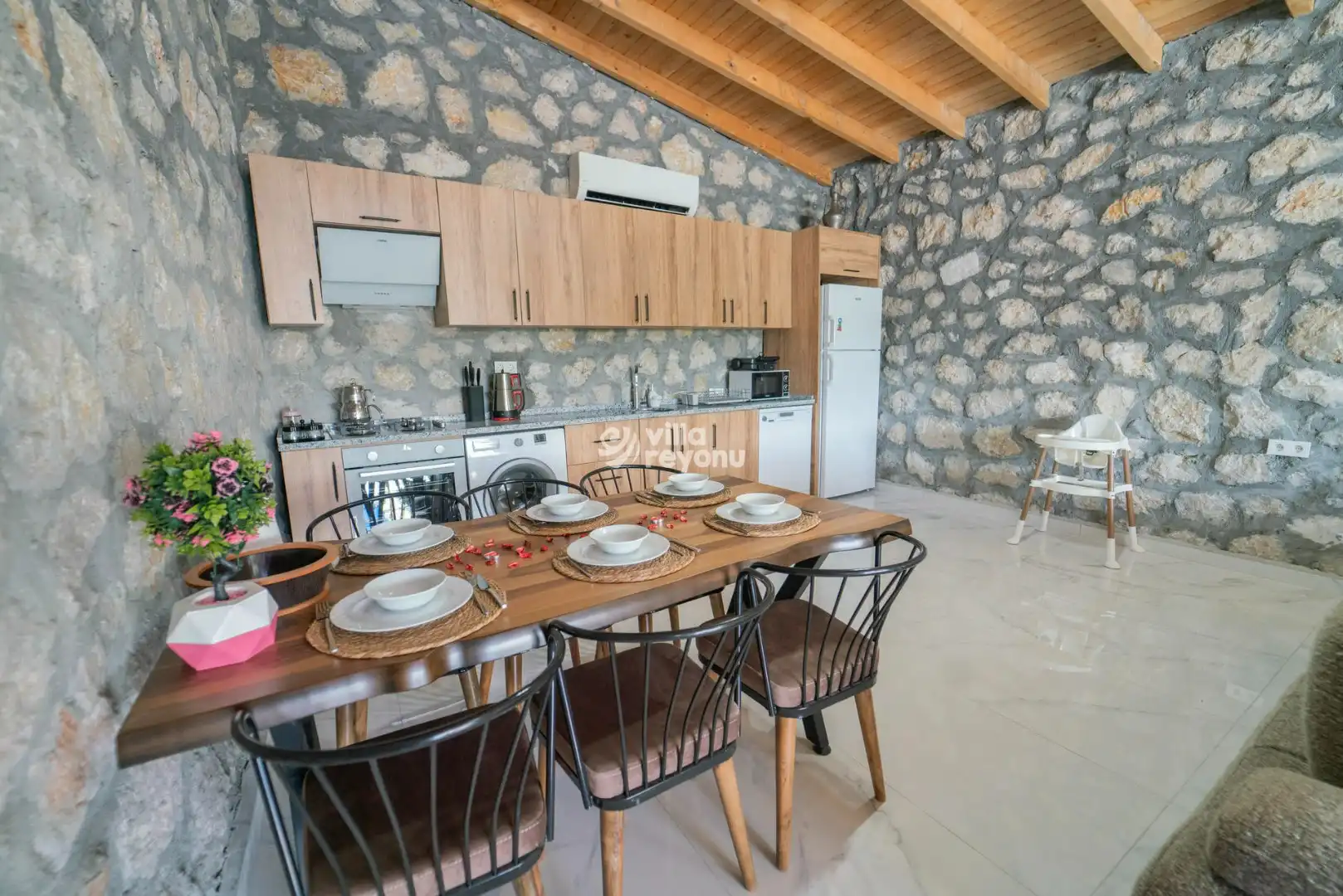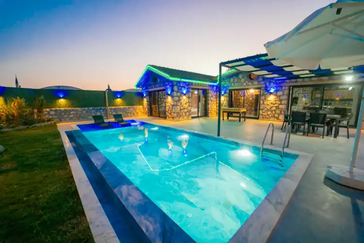 Kalkan Çavdır bölgesinde yer alan bu büyüleyici taş villa, 4 kişilik konaklama kapasitesiyle huzurlu ve keyifli bir tatil sunuyor. Geleneksel taş mimarisi ile dikkat çeken villamız, doğal malzemelerle modern konforu bir araya getiriyor. Ferah ve özenle dekore edilmiş iç mekanlar, tam donanımlı mutfak ve rahat yatak odalarıyla konforlu bir konaklama deneyimi sağlıyor. Geniş ve yemyeşil bahçesinde dinlenebilir, özel havuzunda serinleyebilirsiniz. Villamız, doğanın tadını çıkarmak ve şehir hayatının stresinden uzaklaşmak isteyenler için mükemmel bir kaçış noktasıdır. Kalkan'ın eşsiz doğası ve sakinliği ile çevrili bu taş villa, hem romantik bir tatil hem de ailece geçirilecek keyifli anlar için idealdir. Sevdiklerinizle birlikte unutulmaz bir tatil yaşamak için sizleri bekliyor.