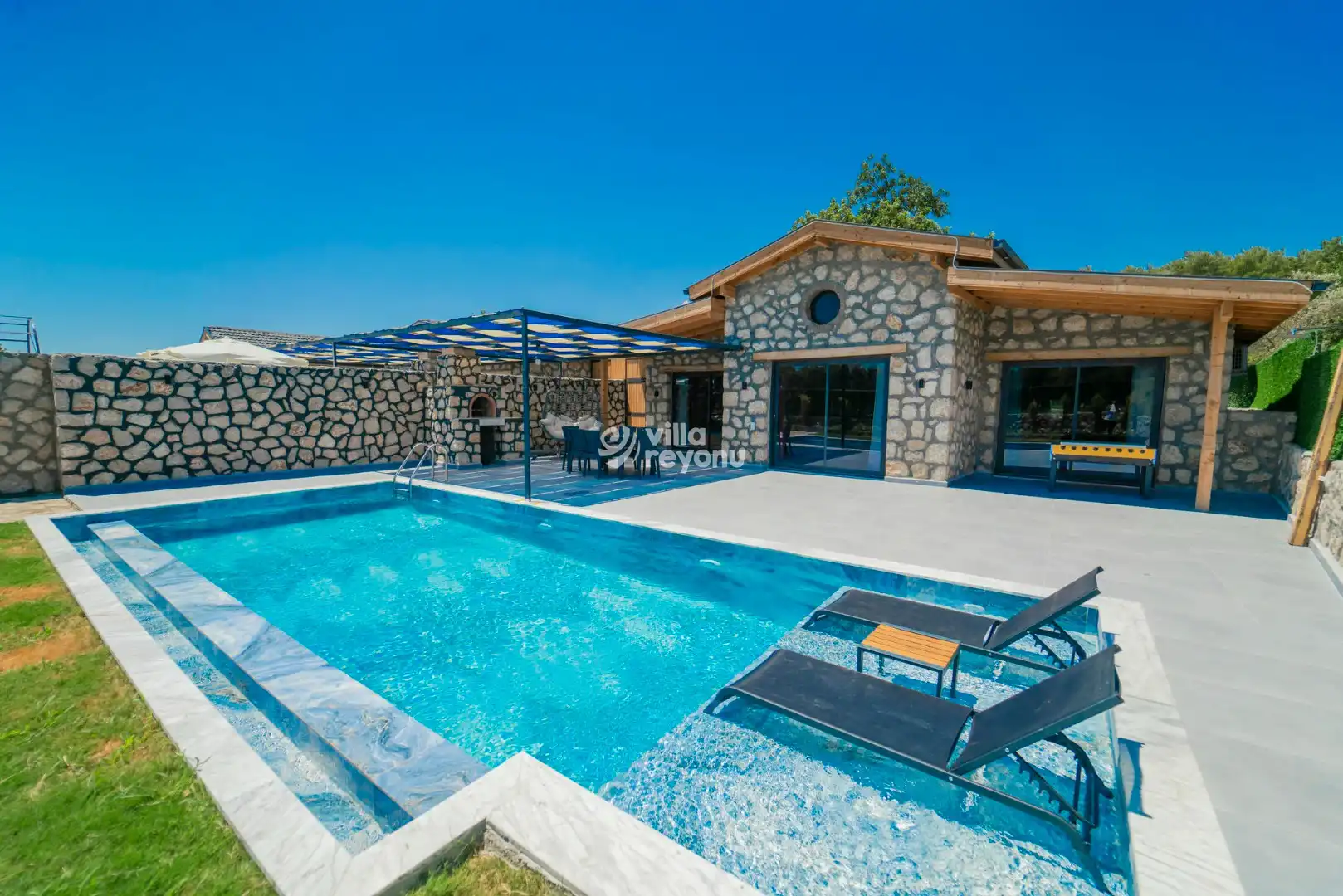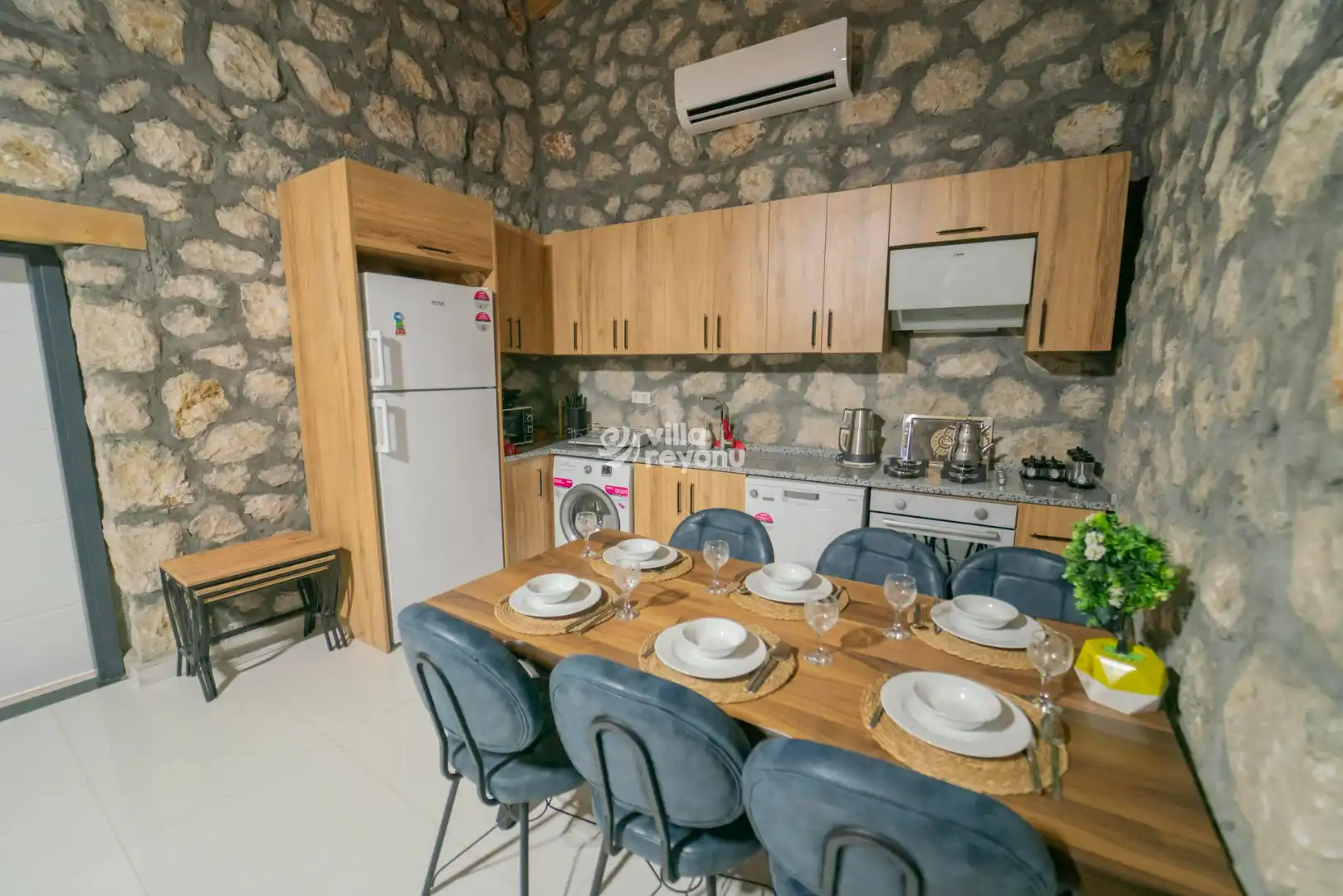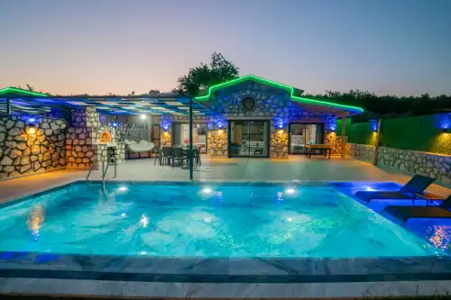 Kalkan Çavdır bölgesinde yer alan bu büyüleyici taş villa, 4 kişilik konaklama kapasitesiyle huzurlu ve keyifli bir tatil sunuyor. Geleneksel taş mimarisi ile dikkat çeken villamız, doğal malzemelerle modern konforu bir araya getiriyor. Ferah ve özenle dekore edilmiş iç mekanlar, tam donanımlı mutfak ve rahat yatak odalarıyla konforlu bir konaklama deneyimi sağlıyor. Geniş ve yemyeşil bahçesinde dinlenebilir, özel havuzunda serinleyebilirsiniz. Villamız, doğanın tadını çıkarmak ve şehir hayatının stresinden uzaklaşmak isteyenler için mükemmel bir kaçış noktasıdır. Kalkan'ın eşsiz doğası ve sakinliği ile çevrili bu taş villa, hem romantik bir tatil hem de ailece geçirilecek keyifli anlar için idealdir. Sevdiklerinizle birlikte unutulmaz bir tatil yaşamak için sizleri bekliyor.