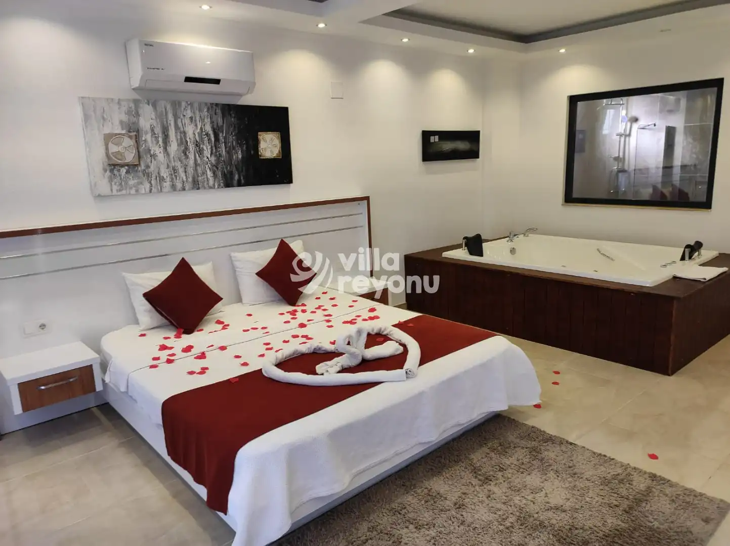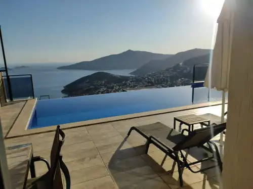 Kalkan’ın Kördere mevkiinde konumlanan Villa Auris, eşsiz deniz ve doğa manzarasıyla misafirlerine huzurlu bir tatil sunuyor. Tek katlı villada 2 suit yatak odası ile 4 kişilik konaklama kapasitesi bulunuyor. Ana yatak odasında jakuzi, geniş yüzme havuzu, çocuk havuzu ve ferah bir güneşlenme terası yer alıyor. Modern mobilyalar ve tam donanımlı mutfakla ihtiyaçlarınız düşünülerek hazırlanmış olan Villa Auris, dışarıdan görünmeyen havuz alanı sayesinde muhafazakâr aileler ve balayı çiftleri için de ideal bir seçenek. Kalkan merkeze yaklaşık 1,5 km uzaklıktaki villaya ulaşım için araç gereklidir. Villada konaklarken Toros dağlarının temiz havası ve Akdeniz’in büyüleyici gün batımları tatilinize ayrı bir güzellik katacaktır. Keyifli ve unutulmaz bir tatil için Villa Auris sizi bekliyor.