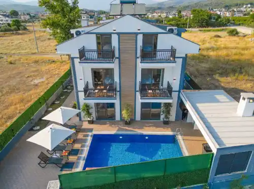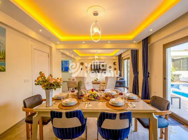 Villa Azuyla, Muğla’nın huzurlu bölgelerinden Seydikemer’de yer alan, 4 yatak odası ve 8 kişilik konaklama kapasitesine sahip özel bir tatil villasıdır. Kalabalık aileler için ideal olan villamız, geniş yaşam alanları ve konforlu donanımıyla misafirlerine keyifli bir tatil sunar.