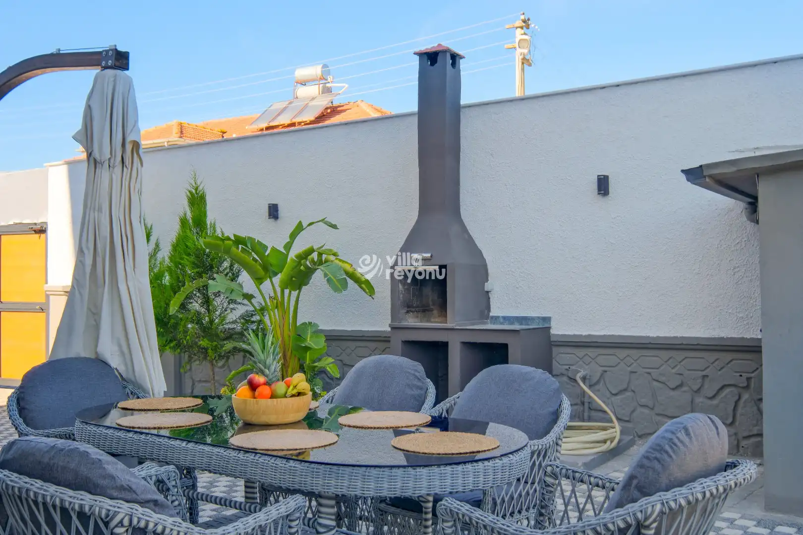 * Doğa içerisinde bulunan tüm villalarımızda düzenli olarak ilaçlama yapılmaktadır. Ancak yine de çevrede kelebek, böcek, sinek vb. bulunma ihtimali bulunmaktadır.