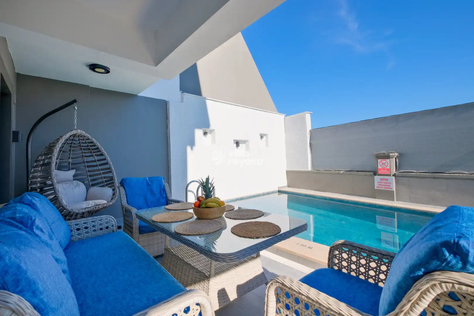 Seydikemer bölgesinde yer alan Villa Barter 3, 6 kişilik konaklama kapasitesiyle misafirlerine lüks ve konfor dolu bir tatil sunuyor. Geniş ve modern tasarımıyla dikkat çeken villa, özel havuzu sayesinde size ve sevdiklerinize serinleme ve eğlenme imkanı sağlar. Doğa ile iç içe olan Villa Barter 3, yemyeşil manzarası ve huzur dolu atmosferiyle şehir hayatının stresinden uzaklaşmak isteyenler için mükemmel bir kaçış noktasıdır. Evinizdeki rahatlığı aratmayan modern iç mekanları ve geniş bahçesi ile ailecek keyifli vakit geçirebileceğiniz bu villa, tatilinizi unutulmaz kılmak için gerekli tüm olanaklara sahiptir. Seydikemer'in eşsiz doğasında, huzur ve dinginlik dolu bir tatil deneyimi yaşamak isteyenler için ideal bir seçim olan Villa Barter 3, sizleri bekliyor.