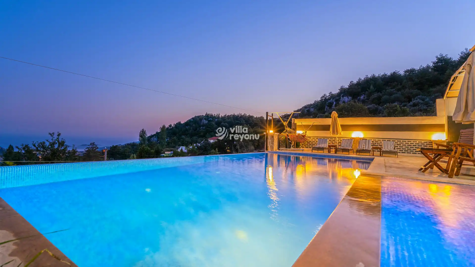 Geniş iç ve dış yaşam alanlarına sahip olan Villa Belora’da; sevdiklerinizle keyifli vakit geçirebileceğiniz özel yüzme havuzu ve yılın her döneminde kullanılabilen kapalı  havuz bulunmaktadır. Muhteşem deniz ve doğa manzarasına karşı dinlenirken, huzurun ve konforun tadını çıkarabilirsiniz.