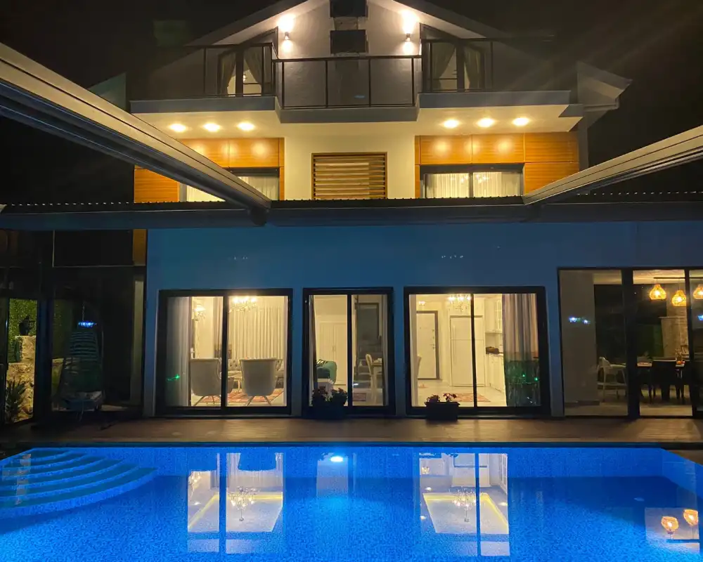 Villa Bovanti, Fethiye Hisarönü mevkisinde konumlanmış olan kiralık villamızdır. Toplam 4 yatak odası mevcut olup 8 kişilik konaklama kapasitesine sahiptir.. Geniş aileler için oldukça idealdir. Soğuk havalarda üstü ve yanları kapatılan ısıtmalı havuzu sayesinde yılın 12 ayı hizmet vermektedir. Oldukça şık ve konforlu şekilde dizayn edilmiş olan villamız, birçok noktaya da yürüyüş mesafesinde bulunmaktadır. Sizlerde muhteşem bir tatil geçirmek isterseniz Villa Bovanti'yi tercih edebilirsiniz.
