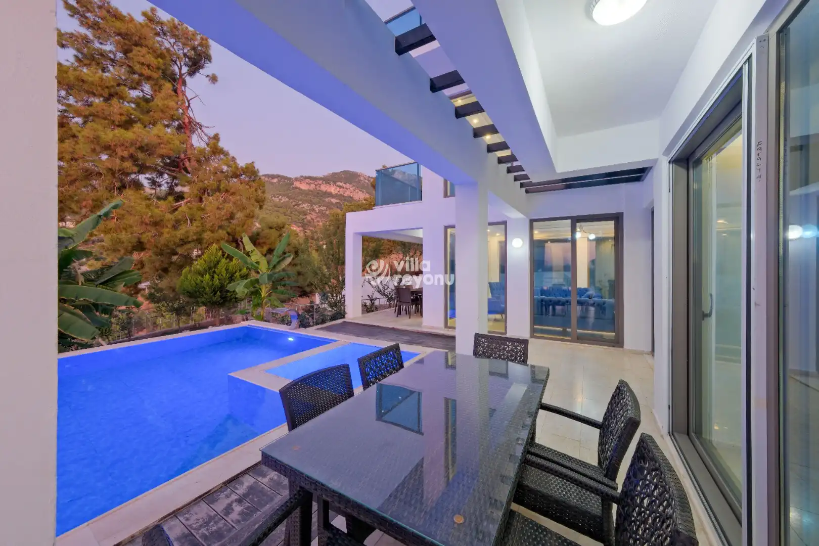 Toplamda 4 yatak odasına sahip olan villamız, 8 kişiye kadar konaklama kapasitesi sunmaktadır. Geniş ve ferah yaşam alanları sayesinde kalabalık gruplar için rahat bir kullanım imkânı sağlar. Modern ve şık detaylarla özenle dekore edilmiş olan villamızda, konforunuz için ihtiyaç duyabileceğiniz her ayrıntı düşünülmüştür.Havuz terasında yer alan şezlonglarda güneşin tadını çıkarabilir, bahçe alanında sevdiklerinizle birlikte keyifli sofralar kurabilir, salıncakta manzaranın ve sessizliğin tadını doyasıya yaşayabilirsiniz. Doğa ile iç içe, huzurlu ve özel bir tatil arayan misafirlerimiz için villamız benzersiz bir konaklama deneyimi sunmaktadır.