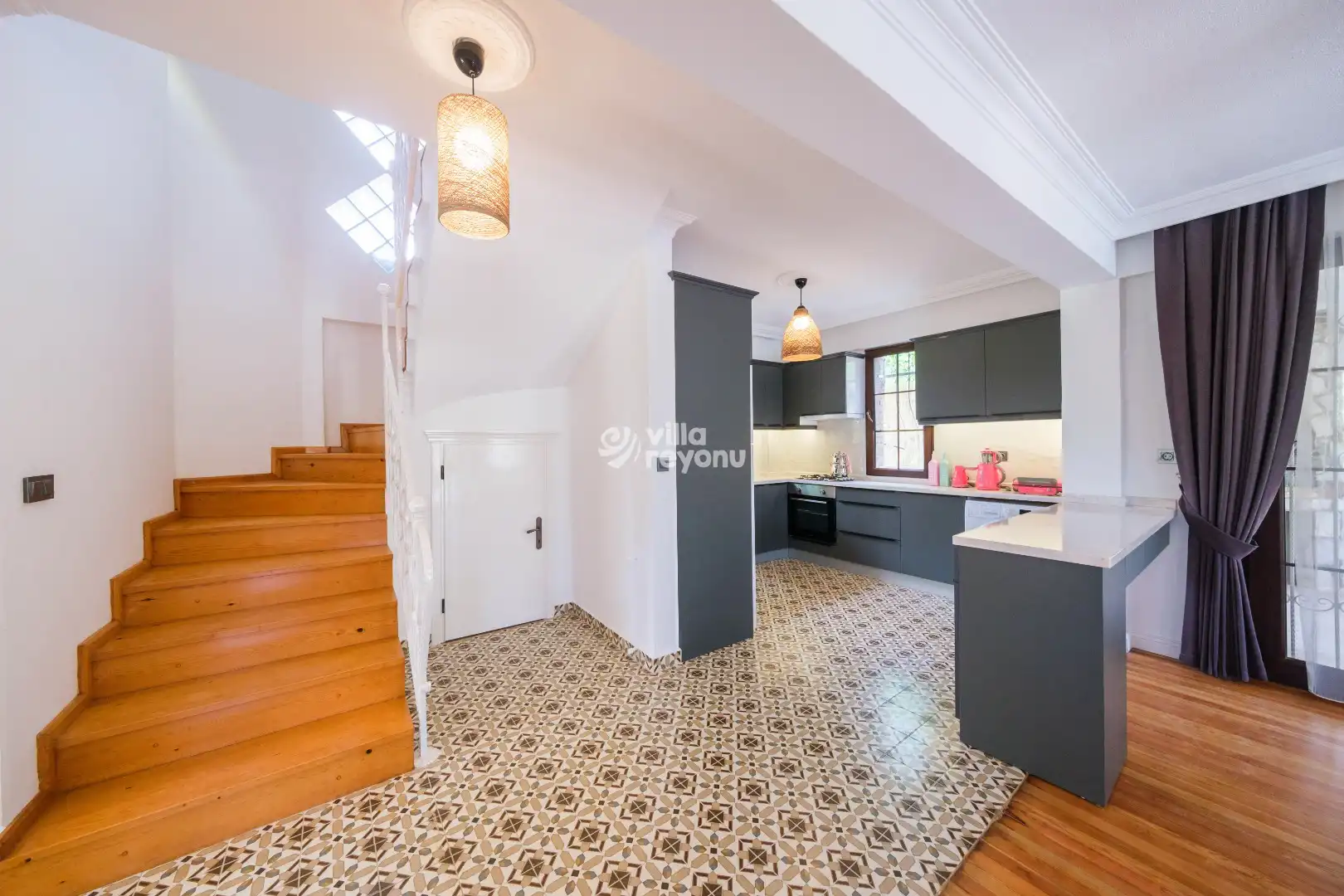 Fethiye’nin doğayla iç içe atmosferiyle ünlü Kayaköy bölgesinde yer alan Villa Casa Mira, 6 kişilik konaklama kapasitesiyle hem çekirdek aileler hem de kalabalık aile grupları için ideal bir tatil seçeneğidir. Geniş ve ferah bahçesi, bahçede yer alan çocuk oyun alanı (salıncak, kaydırak vb.) sayesinde çocuklu misafirler için keyifli anlar sunar. Doğanın kalbinde huzurlu bir konaklama deneyimi vadeden Villa Casa Mira’da, kuş sesleri eşliğinde güne başlayabilir, tatiliniz boyunca Fethiye’nin eşsiz doğal güzelliklerini ve gezilecek birçok noktayı keşfe çıkabilirsiniz.