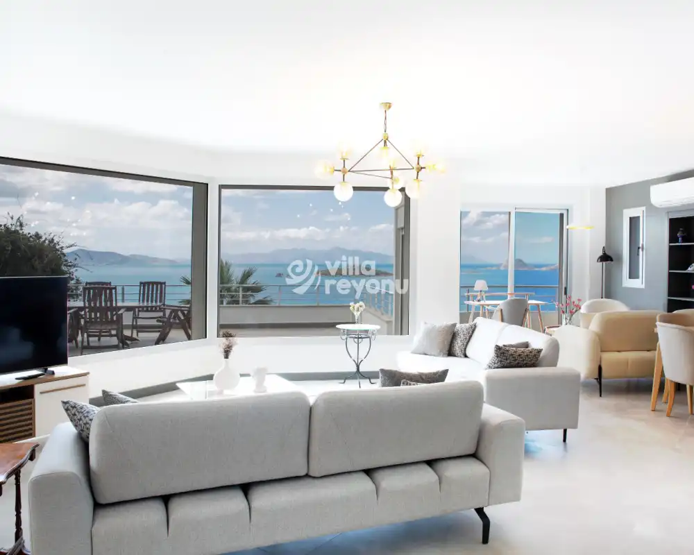 Bodrum Turgutreis’te yer alan 5 odalı, özel havuzlu ve deniz manzaralı yazlık kiralık villamız, geniş aileler için ideal bir seçenektir. Bir dönüm arazi üzerine kurulu olan villamız, yaklaşık 350 metrekarelik kullanım alanı, etkileyici deniz manzarası ve geniş bahçesiyle konforlu bir tatil imkânı sunmaktadır. Havuz başında sevdiklerinizle keyifli anlar yaşarken, yarımadanın en büyüleyici gün batımına tanıklık etme ayrıcalığını da yaşayacaksınız.