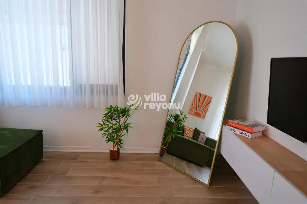 * Bu evin resimleri sitemizde yer alan diğer evlerin resimleri gibi görüntüyü ekrana sığdırmak amacıyla, geniş açılı lens ve profesyonel fotoğraf makinaları ile çekilmektedir. Bu nedenle resimler üzerinde yer alan objeler gerçeğinden daha büyük olarak görülebilmektedir.