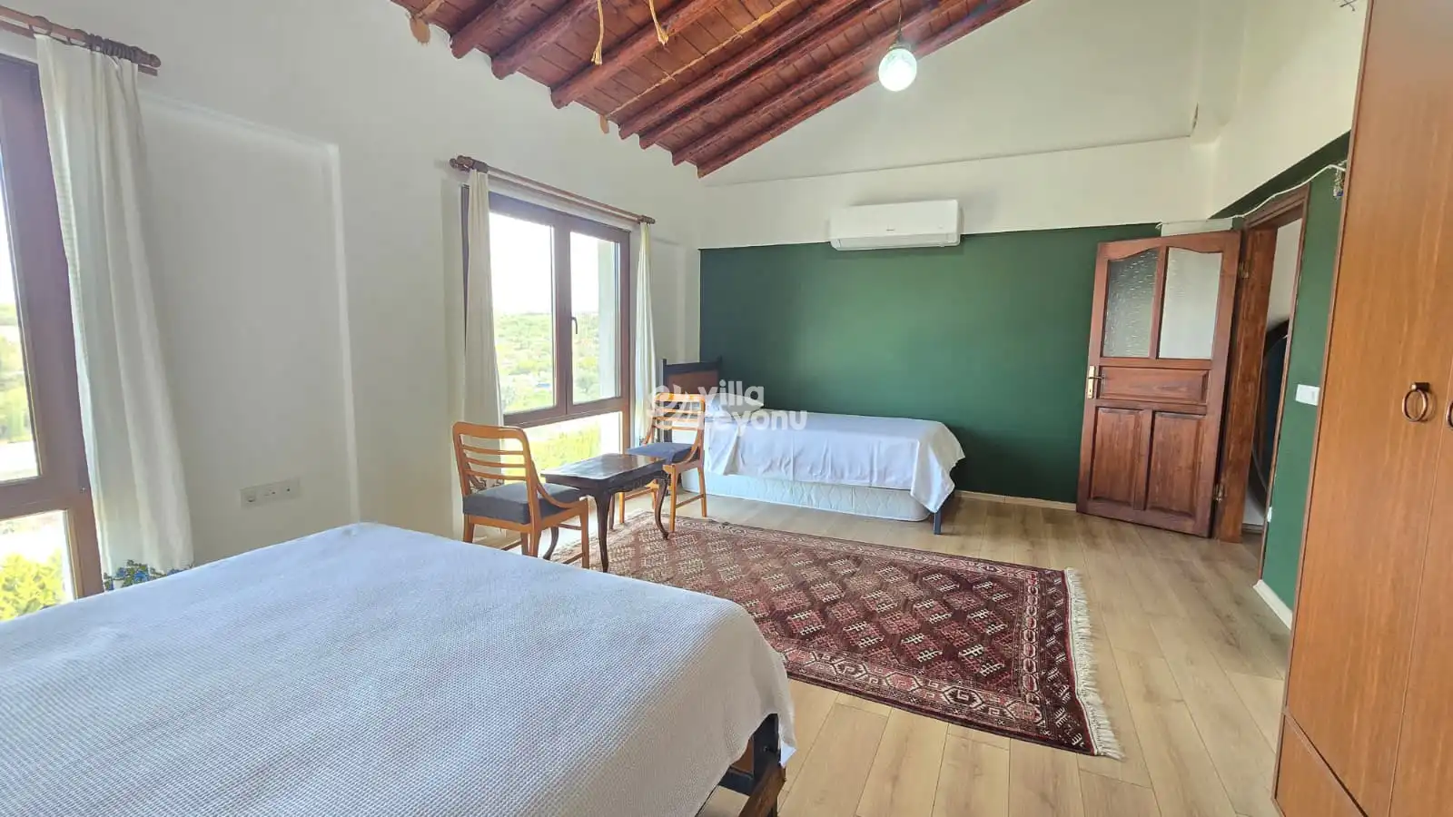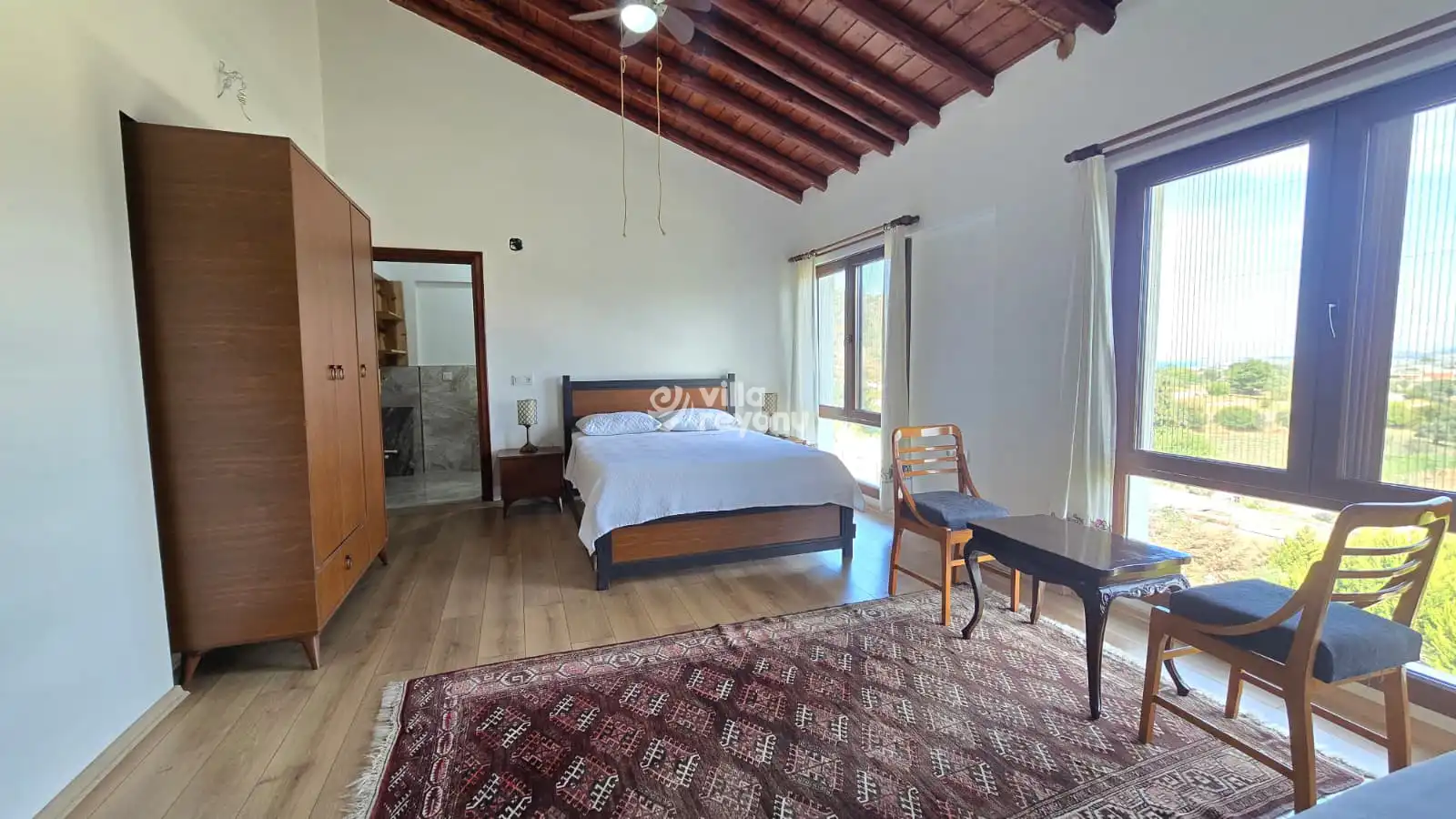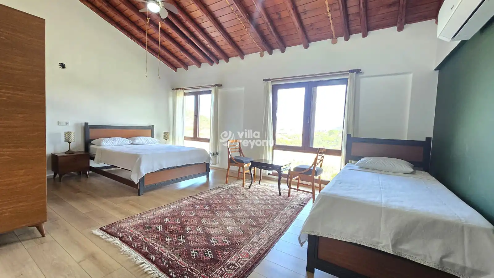 Villada 3 adet odası bulunmakta olup, her odada özel banyo mevcuttur ve toplamda 8 kişilik konaklama imkânı sağlar. Her odada klima, salonda ise şömine ve döküm soba yer almakta olup, ısıtma, soğutma ve sıcak su sistemleri düzenli olarak çalışmaktadır.