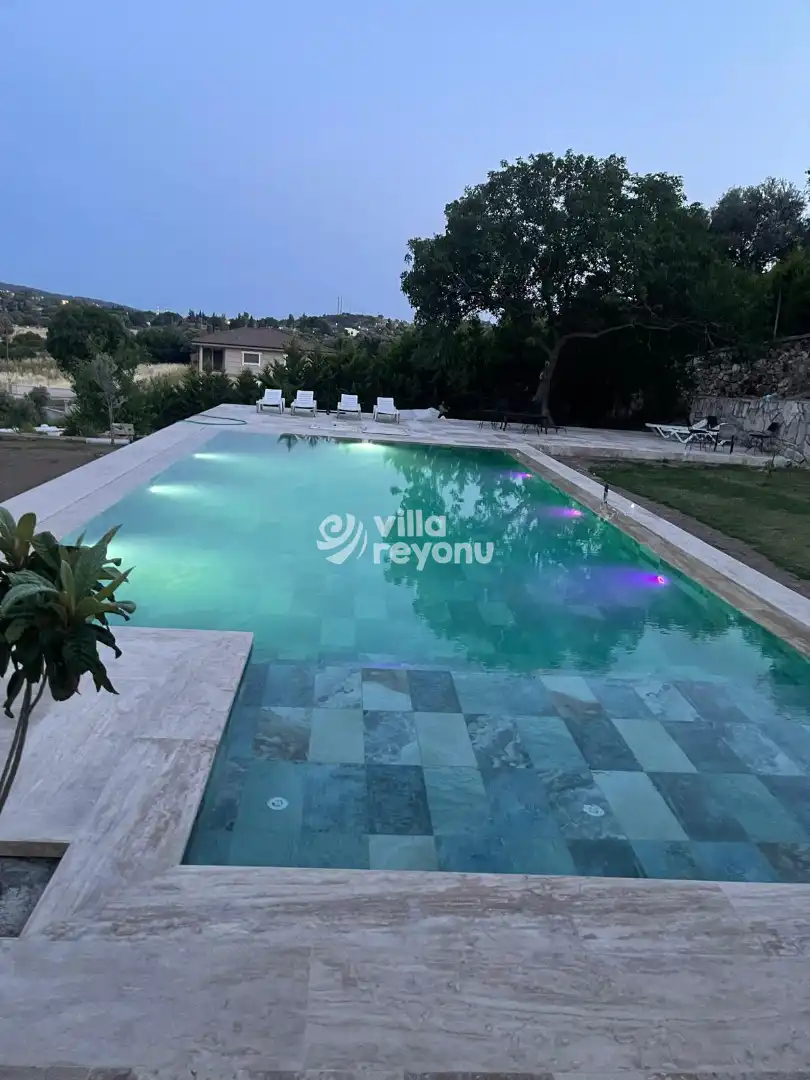 Urla’nın huzurlu ve doğayla iç içe bölgesinde konumlanan Villa Cozy, 3 dönümlük geniş bir arazi üzerinde yer almakta ve yarı olimpik yüzme havuzuna sahiptir. Aileler ve arkadaş grupları için ideal bir tatil seçeneği sunar.
