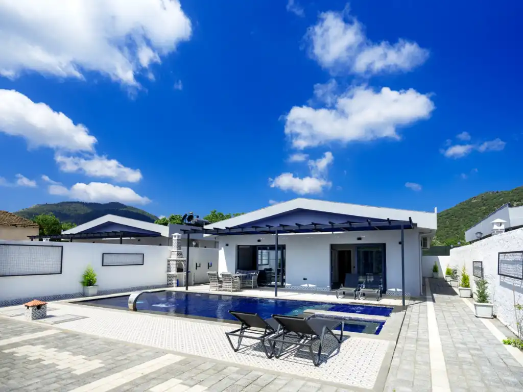 Villa Desire, Fethiye’nin tarihi dokusuyla ünlü Kayaköy bölgesinde yer alan, 2 yatak odalı ve 5 kişilik konaklama kapasitesine sahip, jakuzili ve muhafazakâr konseptte bir tatil villasıdır. Doğayla iç içe konumu, modern tasarımı ve konforlu yaşam alanlarıyla hem aileler hem de balayı çiftleri için huzurlu bir kaçış noktası sunar.