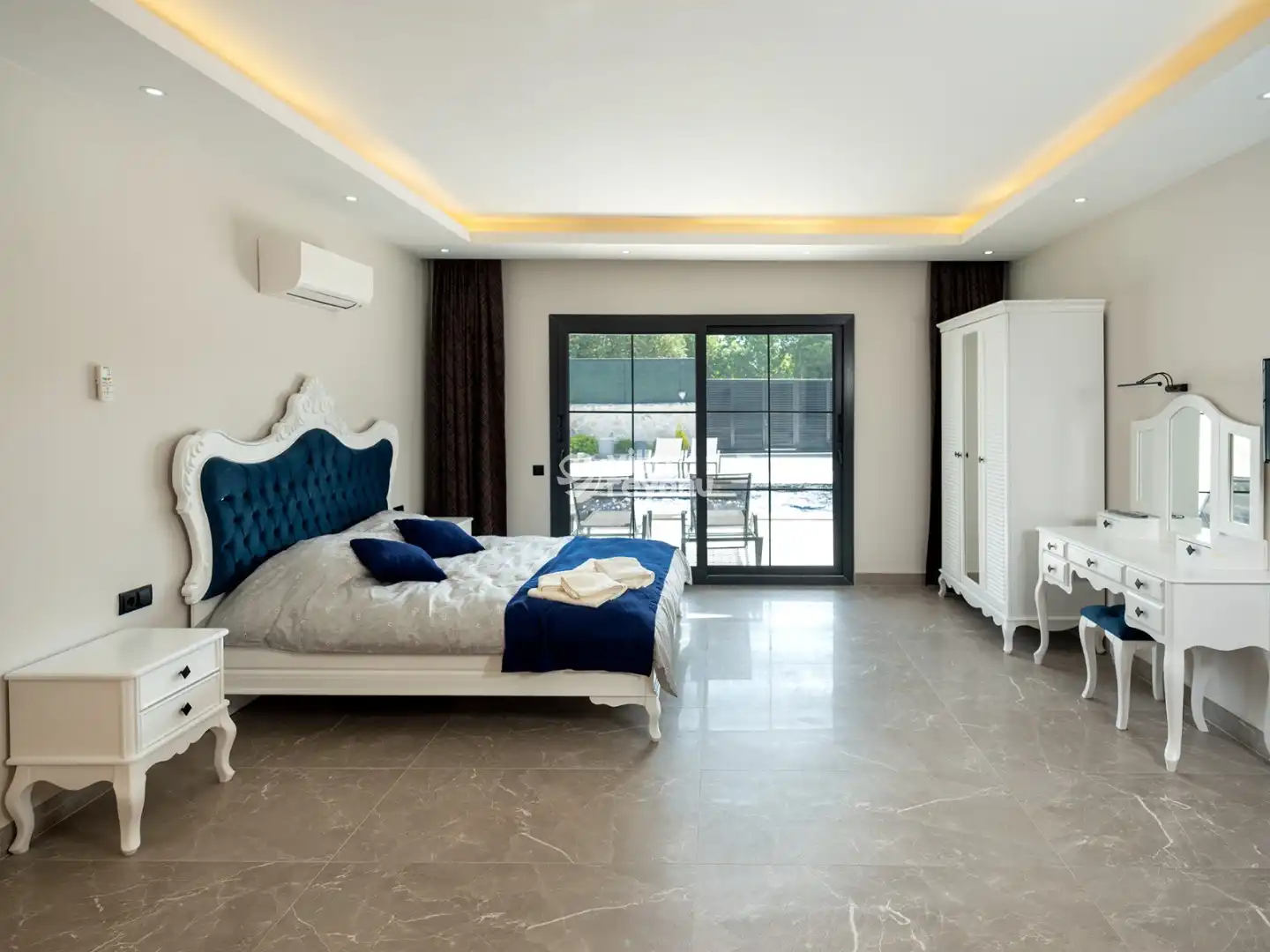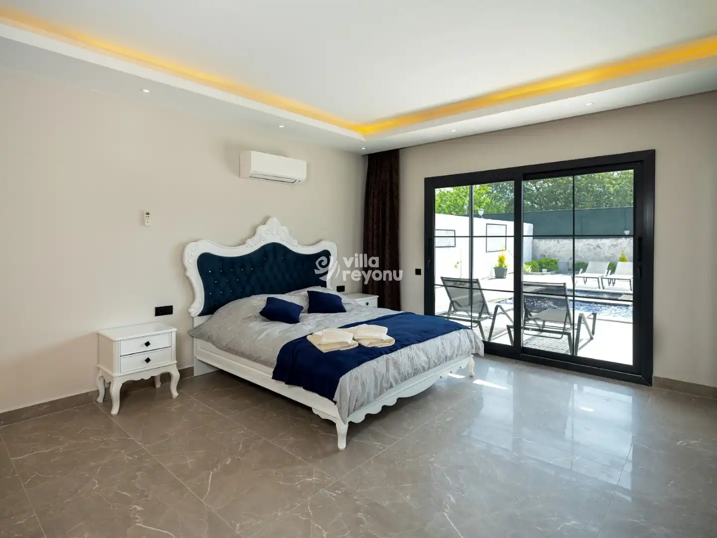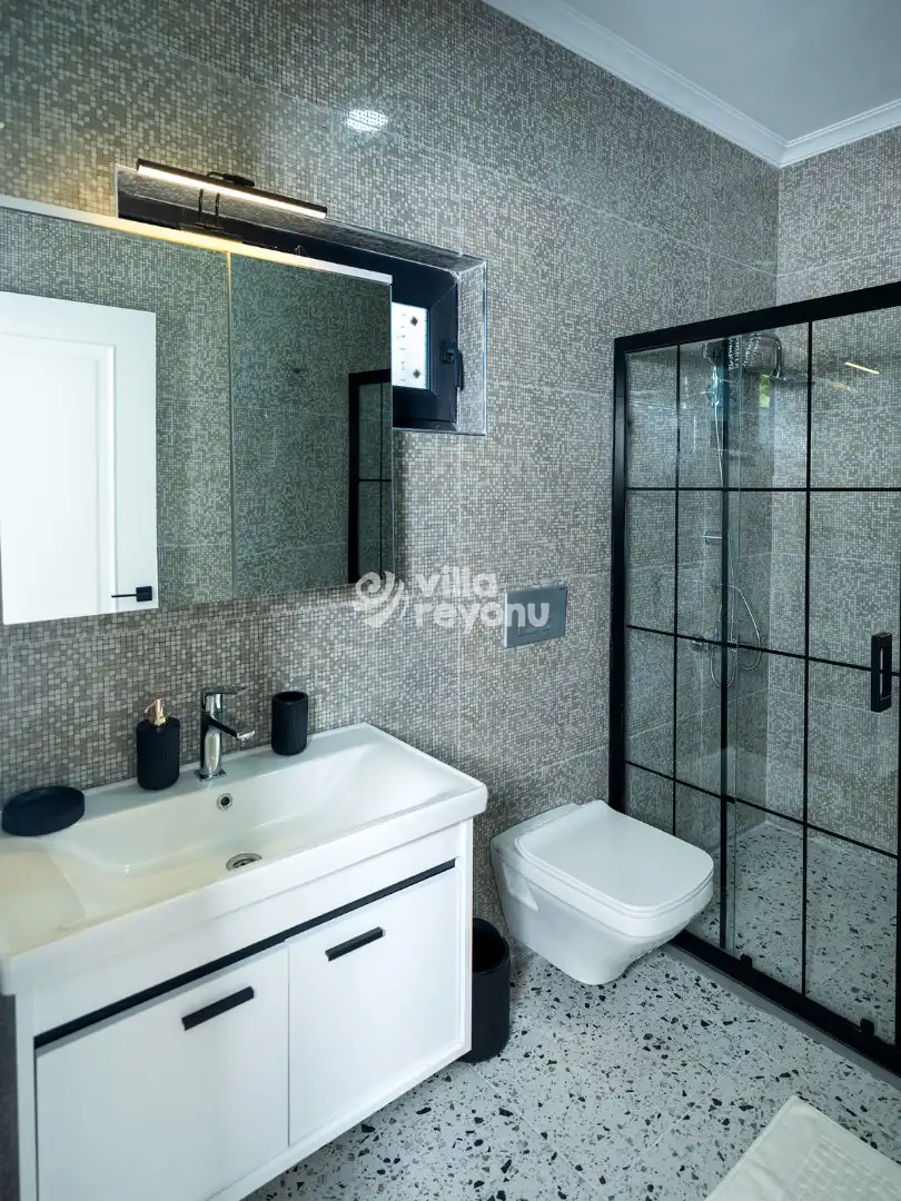Villada bulunan özel yüzme havuzu, gün boyu serinleyip dinlenmeniz için ideal bir ortam yaratırken; geniş bahçe ve oturma alanı sevdiklerinizle keyifli anlar geçirmenize olanak tanır. Tam donanımlı mutfak ve özenle tasarlanmış iç mekanlar, ev rahatlığını tatil konforuyla birleştirir.