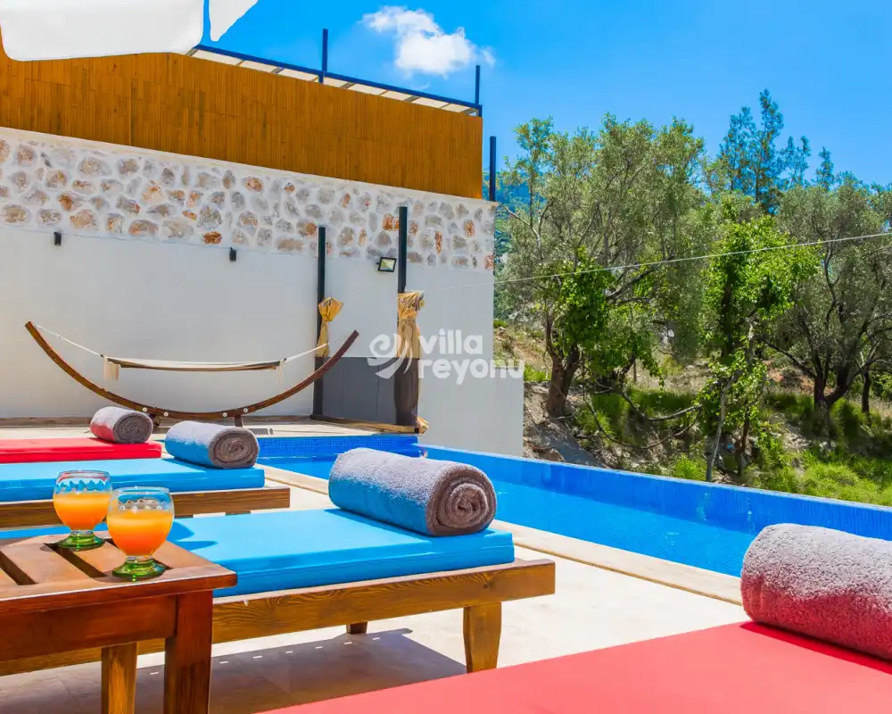 Villa Dilvin , Kalkan İslamlar bölgesinde konumlanmış kiralık villamızdır. 2 yatak odası mevcut olup 4 kişilik konaklama kapasitesine sahiptir. Çekirdek aileler ve balayı çiftleri için oldukça idealdir. Havuz terasının korunaklı olması sayesinde muhafazakar ailelerin tercihleri arasında yer alır. Muhteşem doğa manzarasında eşliğinde sevdiklerinizle unutulmaz bir tatili deneyimi yaşayabilirsiniz.