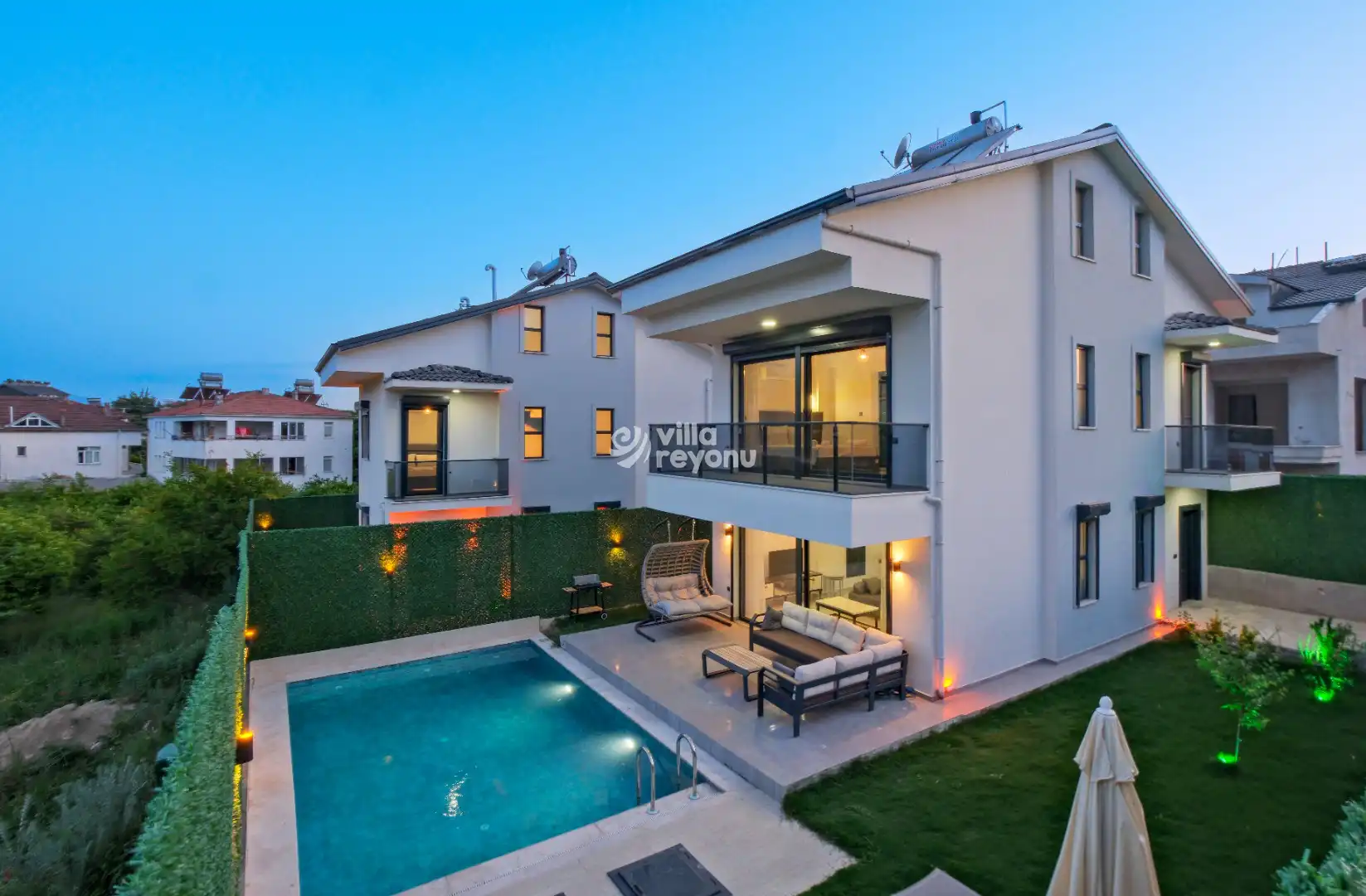 * Doğa içerisinde bulunan tüm villalarımızda düzenli olarak ilaçlama yapılmaktadır. Ancak yine de çevrede kelebek, böcek, sinek vb. bulunma ihtimali bulunmaktadır.
