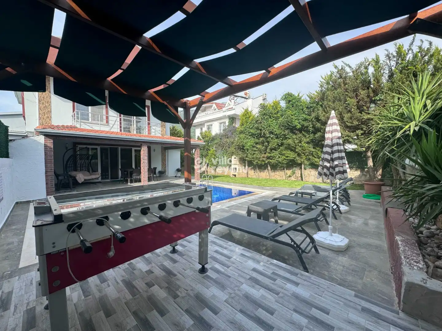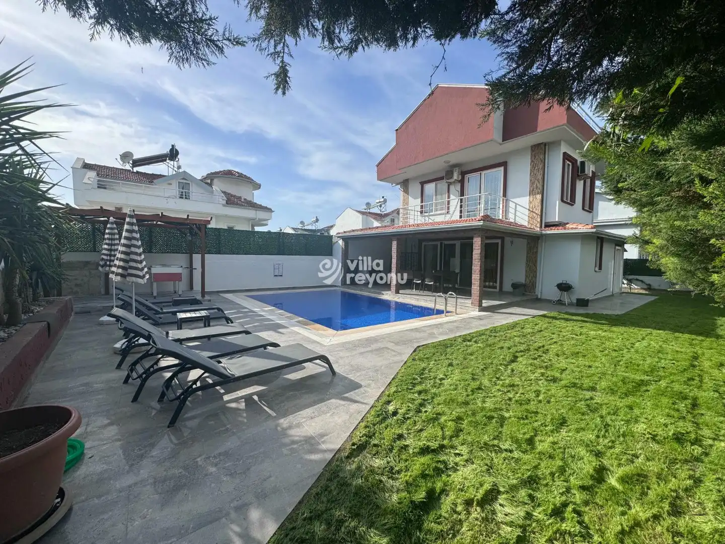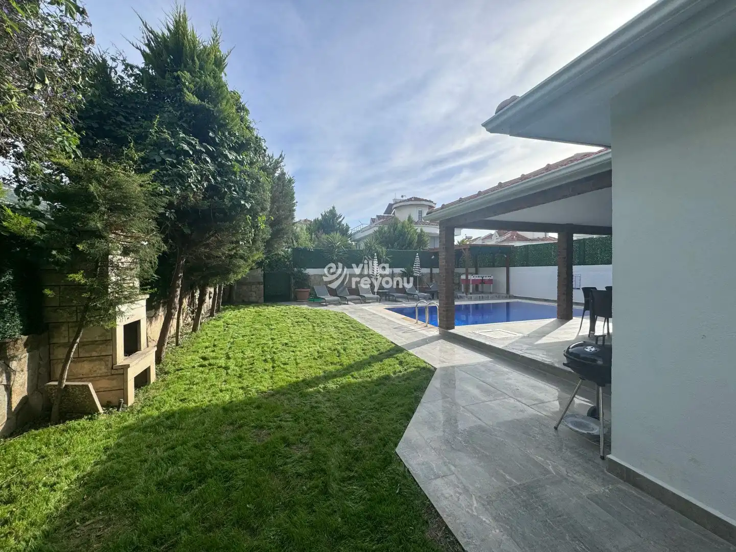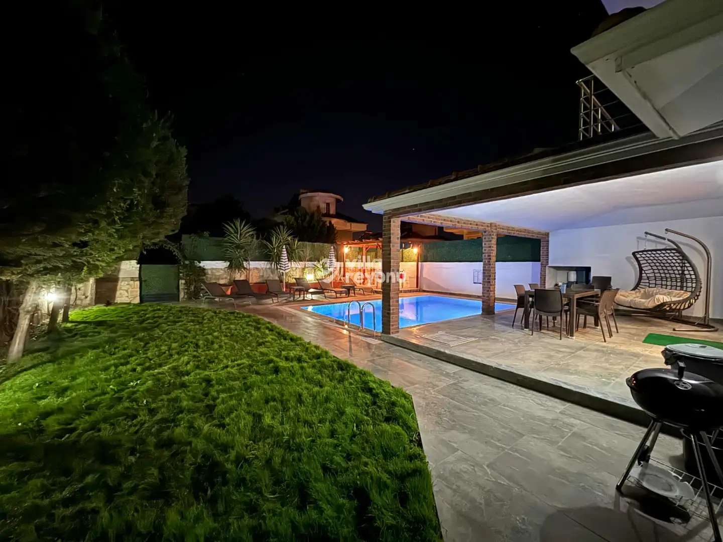 Villada yer alan özel sauna, tatiliniz boyunca bedenen ve ruhen yenilenmenizi sağlar. Her detay, misafirlerin konforu düşünülerek tasarlanmıştır.Dış mekânda geniş, yemyeşil bir bahçe sizi karşılar. Barbekü, şömine ve oturma alanları sayesinde akşamları sevdiklerinizle keyifli vakit geçirebilir, yıldızların altında sıcak sohbetler edebilirsiniz. Tamamen müstakil yapısı sayesinde havuz ve bahçe alanı dışarıdan görünmez.