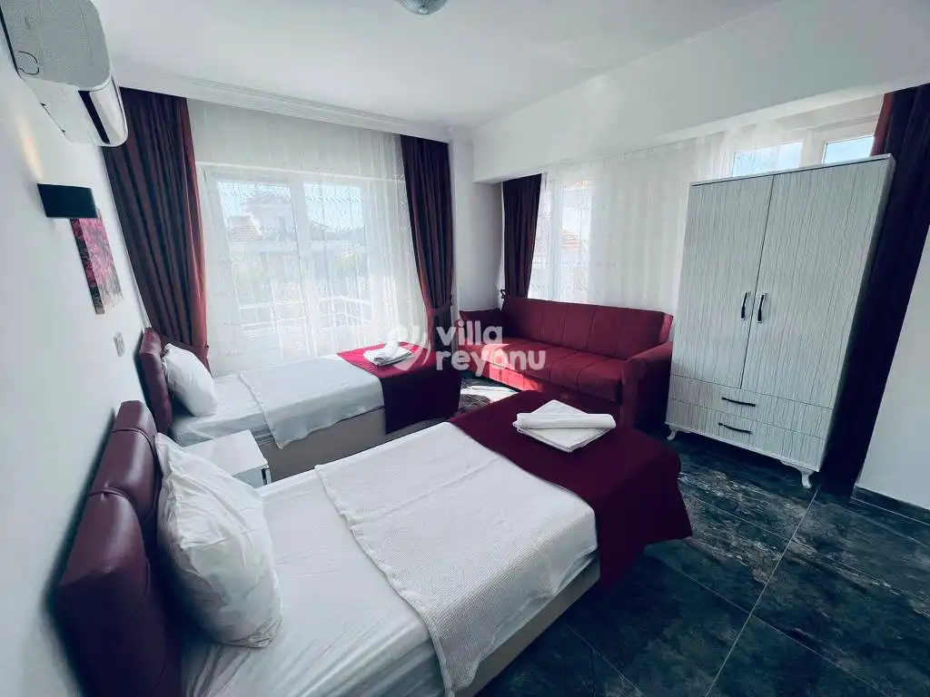 Fethiye’nin doğal güzellikleriyle çevrili Ovacık bölgesinde yer alan Villa Erdeno, doğayla iç içe, sessiz ve konforlu bir tatil arayanlar için mükemmel bir seçenektir. Ovacık’ın serin havası ve Babadağ manzarası, villanın huzurlu atmosferine eşlik eder.Taş mimarisiyle dikkat çeken villa, zarif ve fonksiyonel iç tasarımıyla öne çıkar. Geniş ve aydınlık salon, tam donanımlı mutfak, modern banyolar ve rahat yatak odalarıyla 6 kişiye kadar konaklama imkânı sunar.