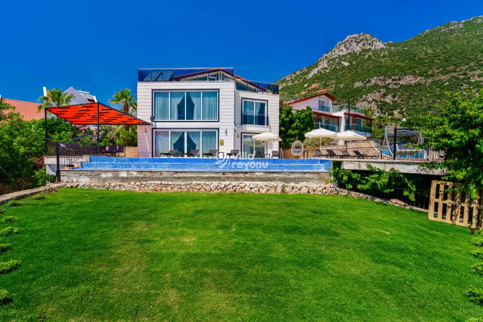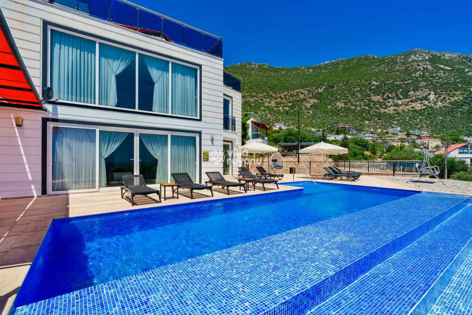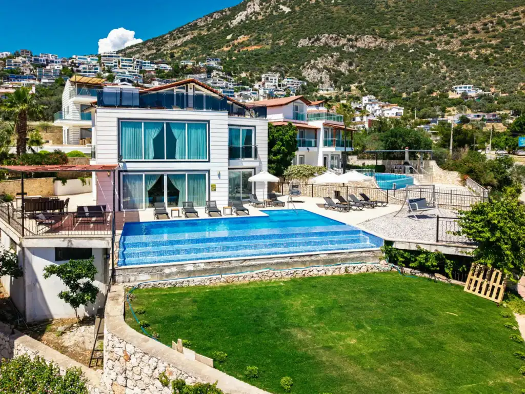 Villa Erguvan, Antalya’nın Kaş ilçesine bağlı Kalkan bölgesinin Ortaalan mevkisinde yer almaktadır. Muhteşem deniz manzarasına sahip olan bu villa, sizlere unutulmaz bir tatil deneyimi sunar. Ayrıca giriş katta yatak odası da mevcuttur.Toplam 6 yatak odası ve 6 banyosu bulunan Villa Erguvan, konforlu ve ferah yapısıyla kalabalık aileler ya da arkadaş grupları için ideal bir seçenektir.