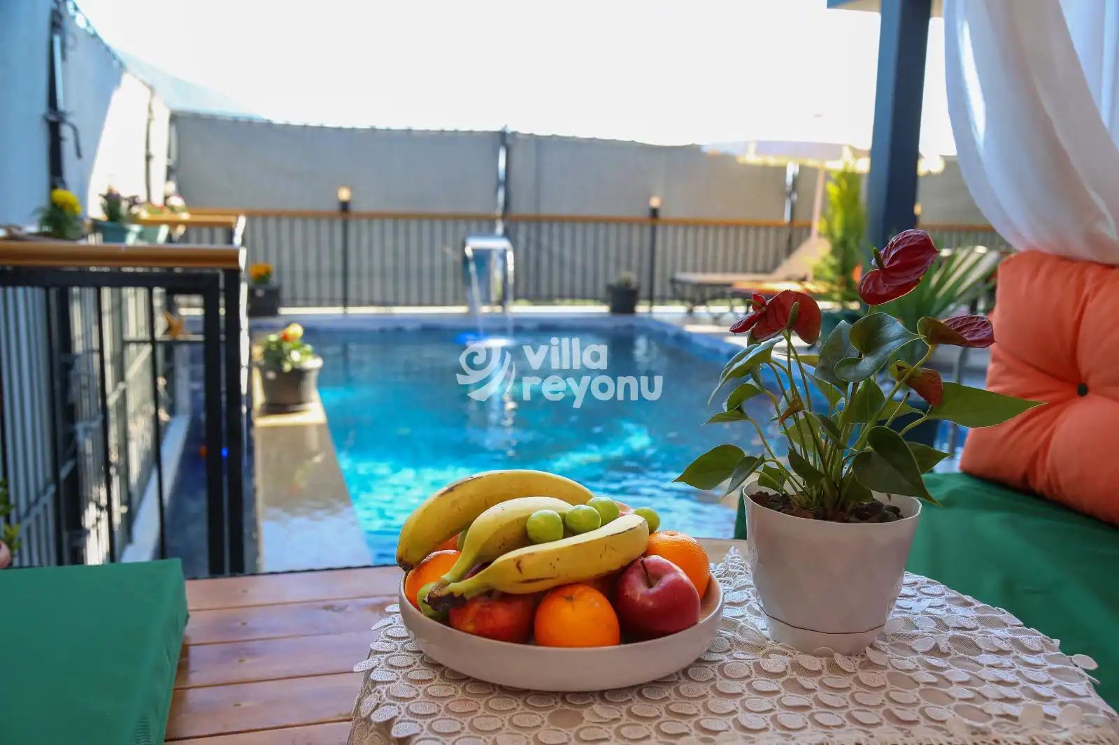 NOT: Doğa içerisinde bulunan tüm villalarımızda düzenli olarak ilaçlama yapılmaktadır. Ancak yine de çevrede kelebek, böcek, sinek vb. bulunma ihtimali vardır.