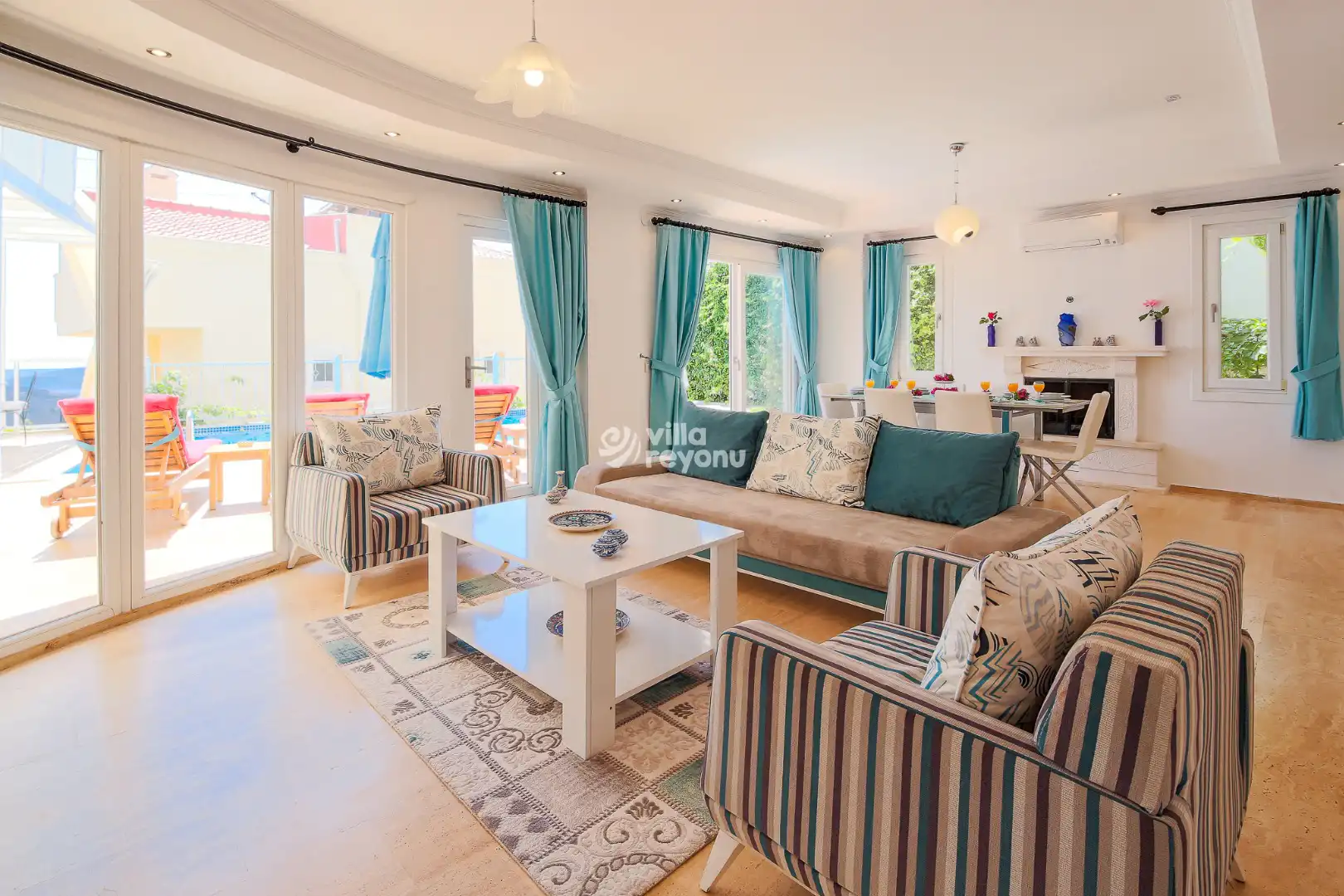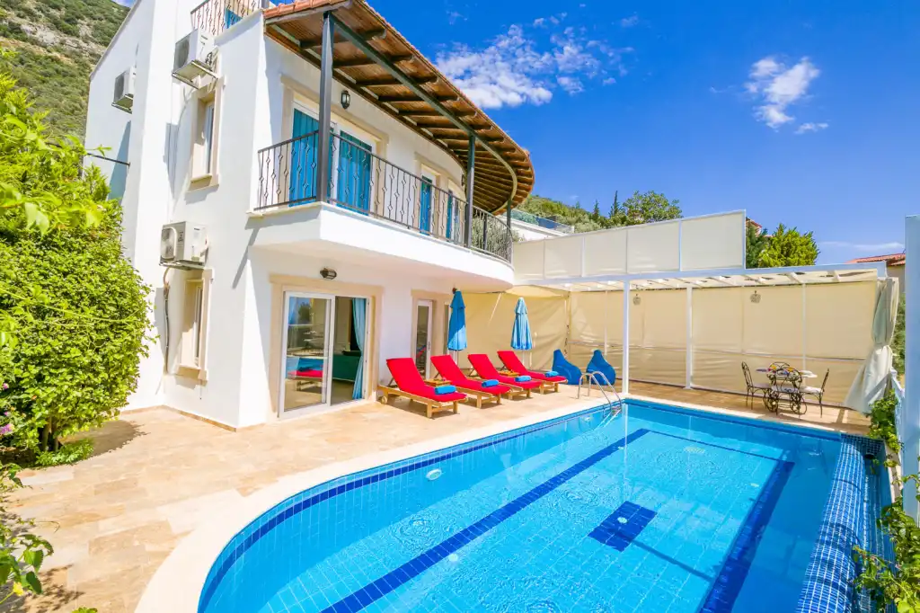 Kalkan şehir merkezine yalnızca 2 km mesafede yer alan Villa Evelor’da, sevdiklerinizle birlikte hem sakin hem de keyifli bir tatil geçirebilirsiniz.