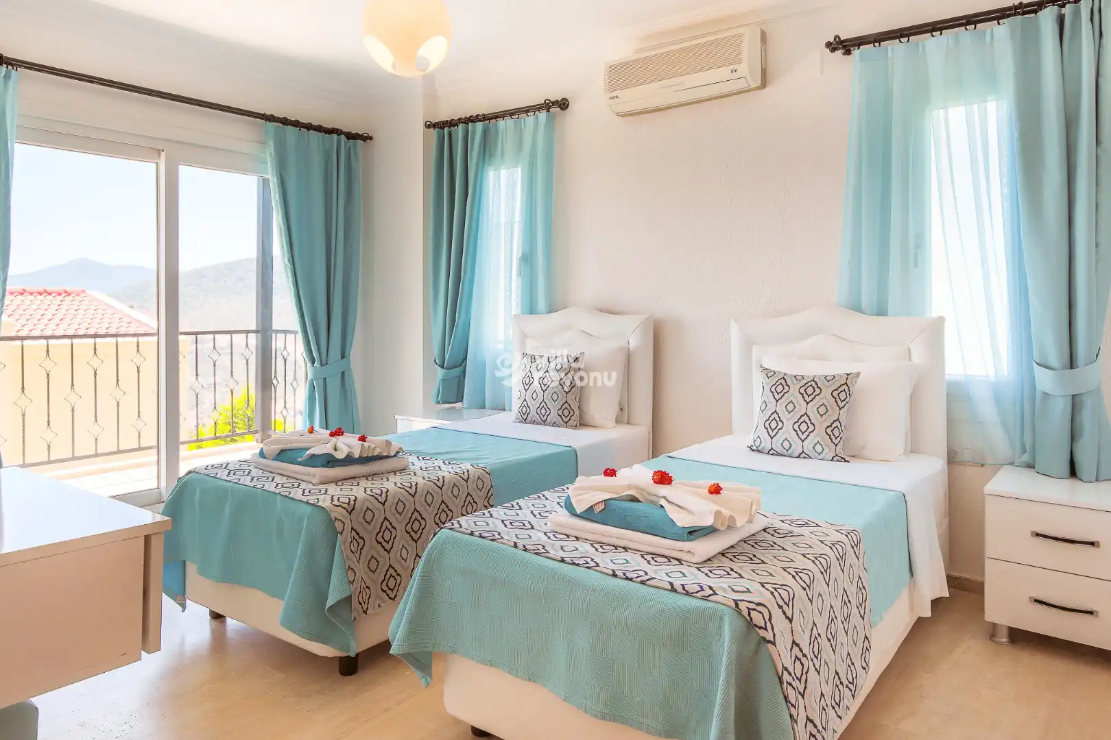 Villa Evelor, Kalkan’ın gözde bölgelerinden biri olan Kızıltaş mevkiinde konumlanmaktadır. Toplam 3 yatak odasına sahip olan villamız, 6 kişiye kadar konaklama kapasitesi ile kalabalık aileler ve arkadaş grupları için ideal bir tatil seçeneğidir.