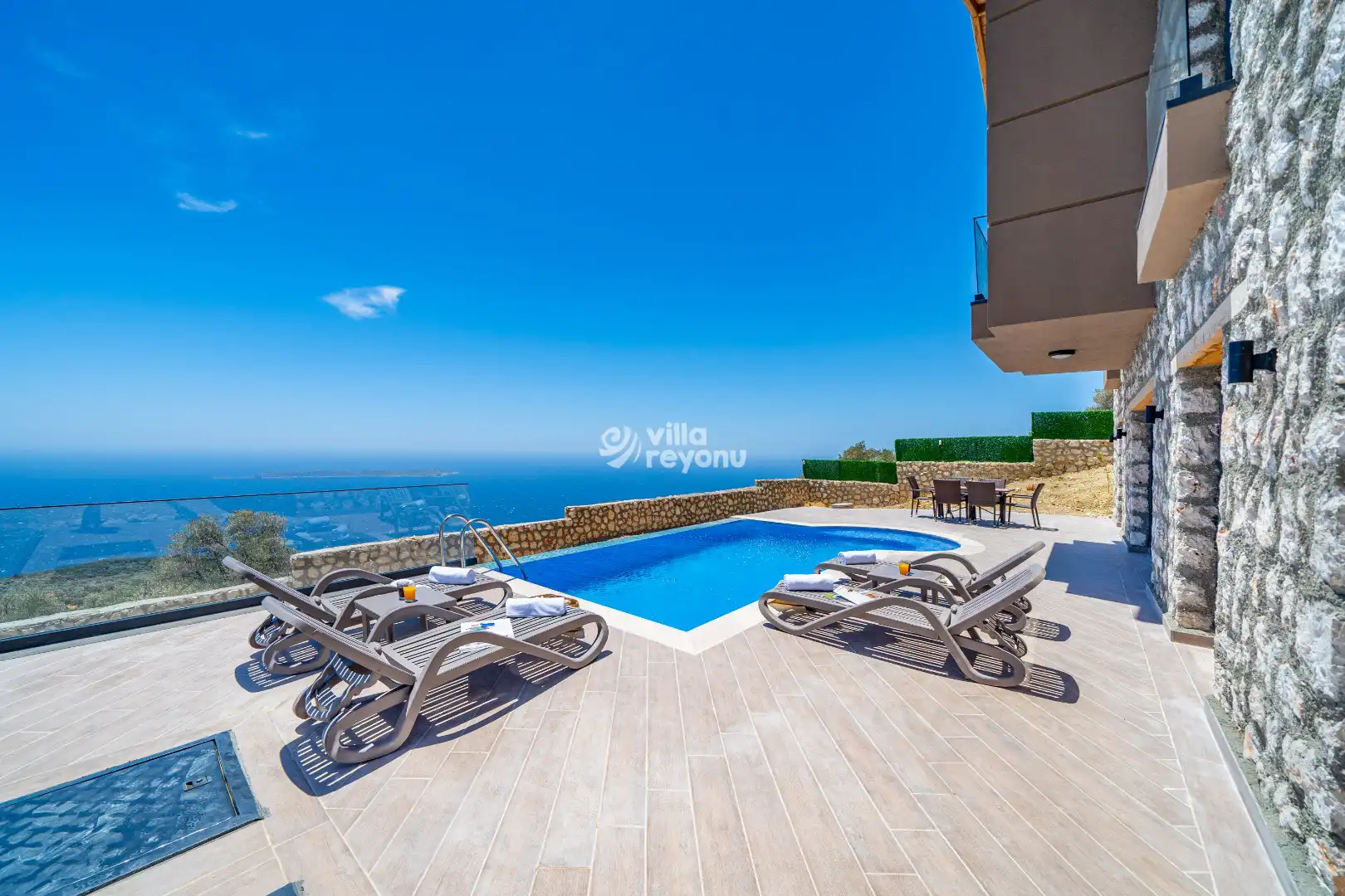 Antalya’nın Kaş ilçesinde konumlanan Villa Feronel 3, Baldıraz bölgesinde yer almaktadır. Bu lüks villa, 3 yatak odası ile toplamda 6 kişilik konaklama imkânı sunmaktadır. Tüm odalar özenle tasarlanmış olup, misafirlerimize unutulmaz ve konforlu bir tatil deneyimi sağlamaktadır. Deniz manzaralı bu villada, eşinizle birlikte hem huzurlu hem de keyif dolu bir tatilin tadını çıkarabilirsiniz.