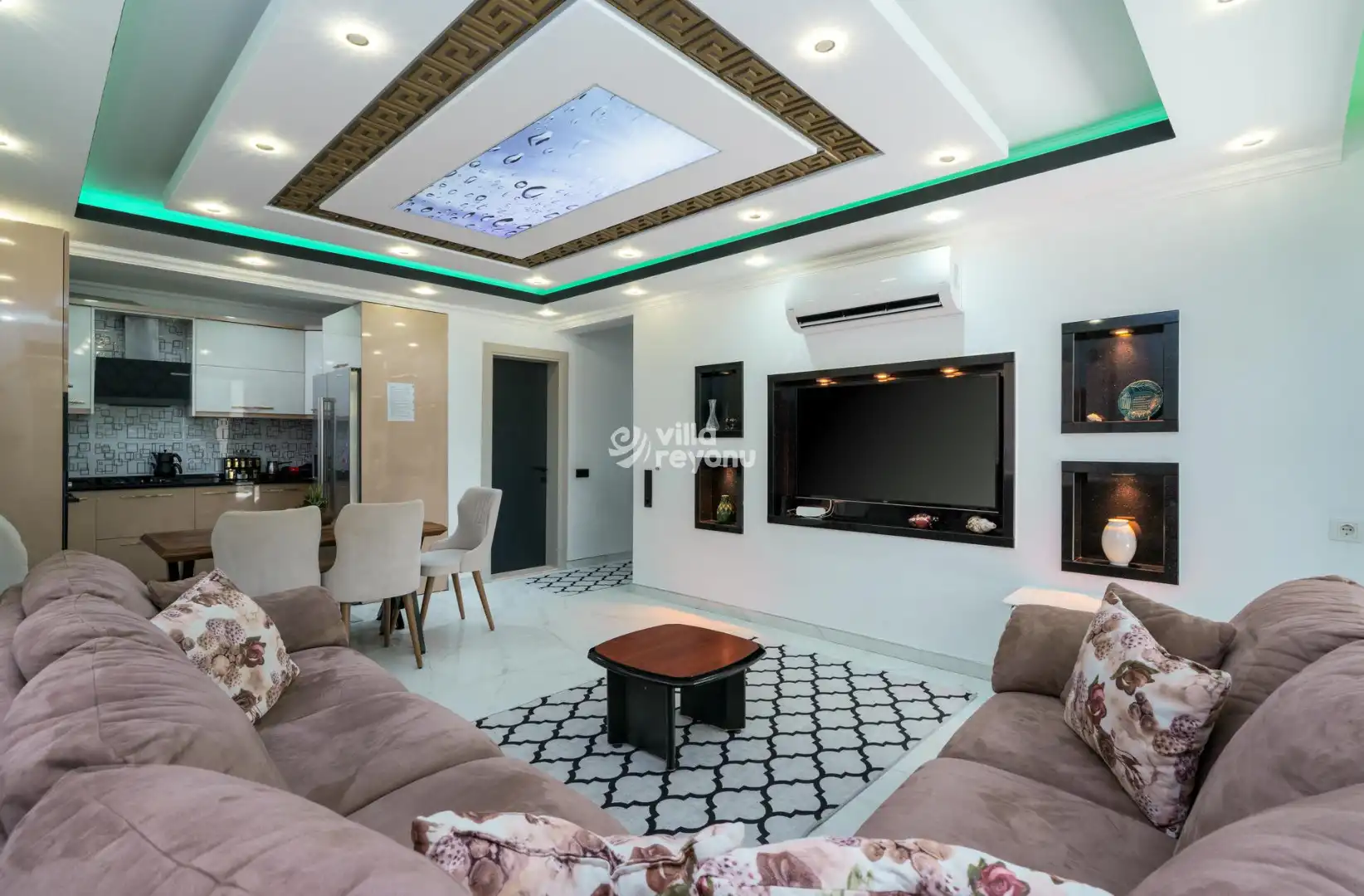 Bu evin resimleri sitemizde yer alan diğer evlerin resimleri gibi görüntüyü ekrana sığdırmak amacıyla, geniş açılı lens ve profesyonel fotoğraf makinaları ile çekilmektedir. Bu nedenle resimler üzerinde yer alan objeler gerçeğinden daha büyük olarak görülebilmektedir.