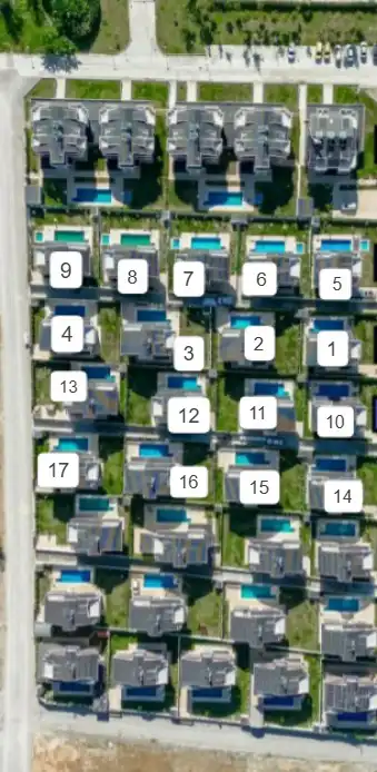 * Villamız yan yana 17 adet aynı yapıda villadan oluşmaktadır. Birden fazla villa kiralamak isteyen misafirlerimiz için ideal bir seçenek olacaktır.