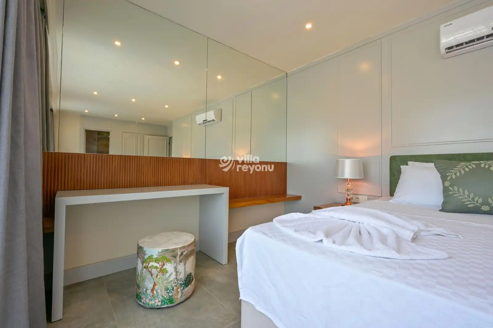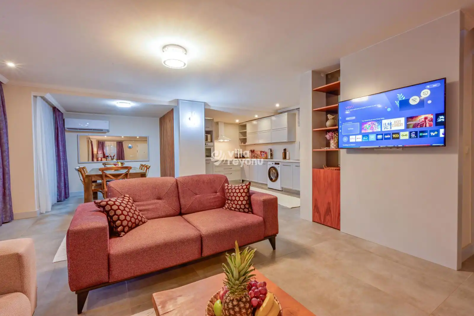 Fethiye’nin gözde bölgelerinden Ölüdeniz’de konumlanan Glissera Villası, 4 yatak odası ve 8 kişilik konaklama kapasitesi ile ideal bir lüks tatil deneyimi sunuyor. Geniş yaşam alanları ve zarif mimarisi ile villa, aileler ve arkadaş grupları için mükemmel bir seçenek. Merkezi konumda bulunan villada, konforunuz için özenle seçilmiş mobilyalar yer almakta. Amerikan tarzı modern mutfak, tüm ihtiyaçlarınızı karşılayacak donanım ve ekipmanlarla donatılmıştır. Dört yatak odasının her biri klima ve özel banyo/WC ile donatılmış olup, maksimum rahatlık sağlanmaktadır.